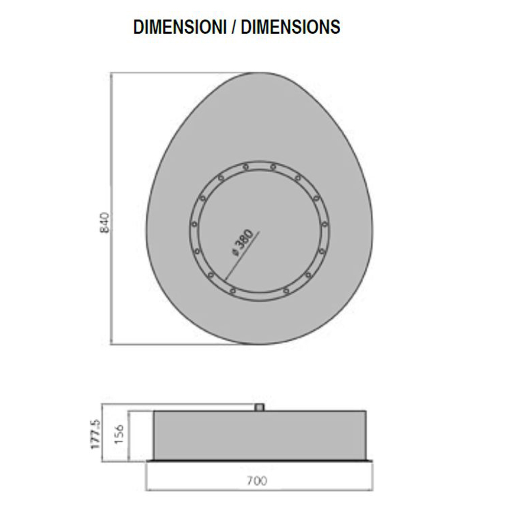 ovale ontwerp combineert de essentiële en ronde vorm met het aangename licht en de warmte van de open haard, waardoor een ideaal meubelstuk ontstaat om een intens psychofysisch welzijn te verspreiden.