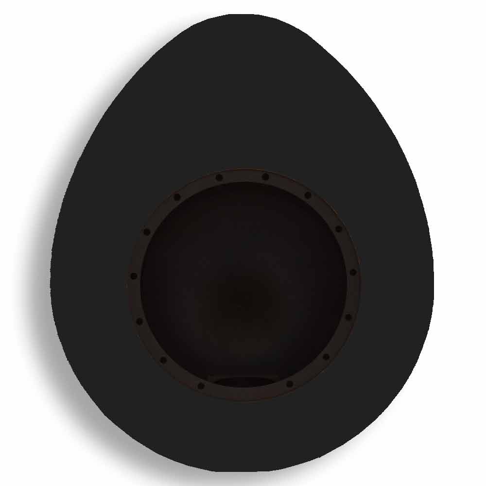 Ovale bio-ethanolhaard aan de muur van modern design in staal, gemaakt in Italië.