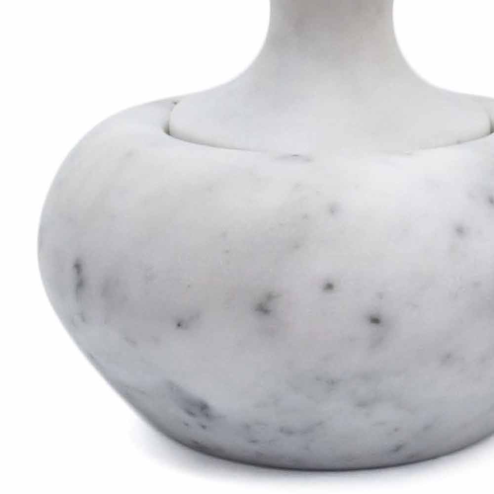 Functionele en elegante notenkrakerstamper gekenmerkt door de innovatieve vorm en het witte Carrara-marmer waaruit het is samengesteld.