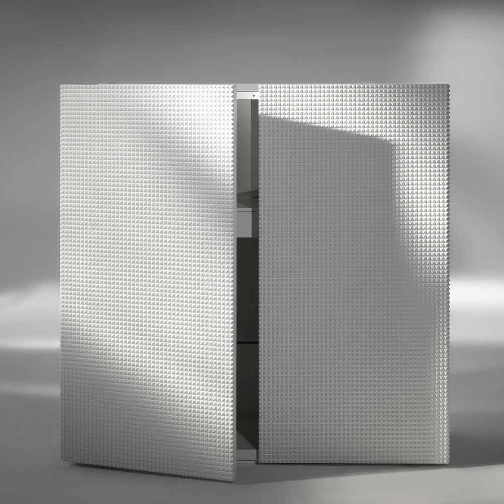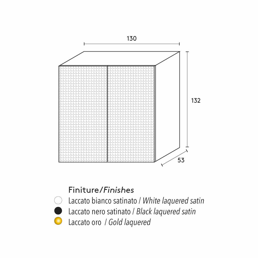 Hedendaagse dressoir 2 deuren met opening aan de zijkanten en de bovenkant in gelakt glas. indoor glas plank. Satijnen afwerking. Verkrijgbaar in wit gelakt satijn, gelakt satijn zwart gelakt of goud.