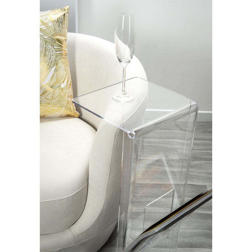 De kleine tafel QUERO VAS wordt gekenmerkt door een modern en elegant ontwerp, perfect om in uw woonkamer te passen. Het is gemaakt met PMMA van virgin-polymeren. De fysieke kenmerken van het plexiglas (thermisch isolerend, schokbestendig, niet-vervormbaar, onveranderlijk) maken de tafel geschikt voor zowel binnen- als buitenruimtes. De helderheid blijft ongewijzigd en onveranderlijk in de loop van de tijd. Het gebruikte PMMA-plexiglas van virgin-polymeren is niet-toxisch, hypoallergeen, geurloos en antibacterieel. 100% recyclebaar.