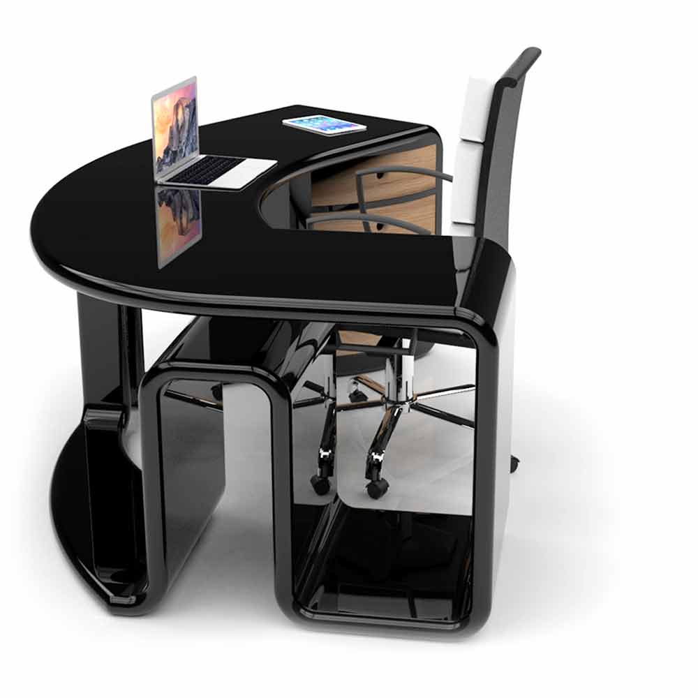 Naast de voortdurende bochtigheid zijn er nog 4 lades die hem tot de hoofdrolspeler van uw kantoor maken.