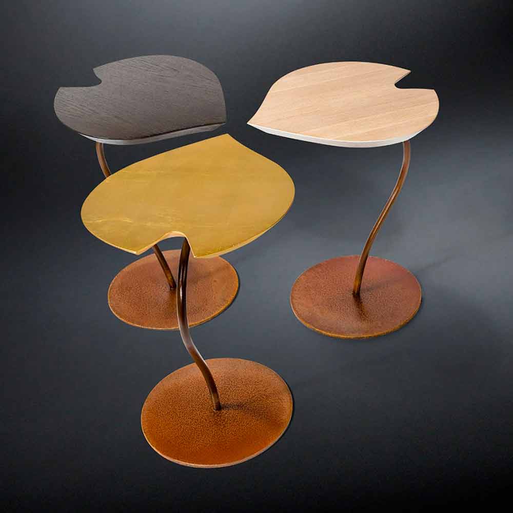 Leaf is een salontafel of een echte sculptuur, robuust, verfijnd en elegant, origineel design en moderne bladvormige, geschikt voor elk type van meubilair. Gekenmerkt door 'oorspronkelijke vorm die lijkt op een blaadje of een blad, brengt een vleugje creativiteit in elke omgeving waarin het wordt geplaatst. volledig in Italië tabel gerealiseerd blad een unieke en onnavolgbare uitvoering is het wezenlijk kenmerk ingekapseld in zijn top van gefineerd MDF in drie verschillende afwerkingen: poreuze natuurlijke eik geopend gebleekt of poriën geborsteld eiken geopend wenge-mokka of met finish in bladgoud tegels. Het blad is voorzien van een basis gemaakt van corten effect gelakt metaal. Leaf brengt zijn unieke design. Verkrijgbaar in verschillende afwerkingen.
