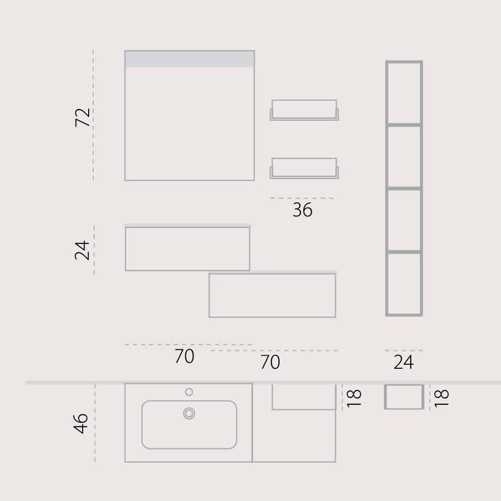 Badkamer schorsing meubilair samenstelling gemaakt in Italië, Forlì
