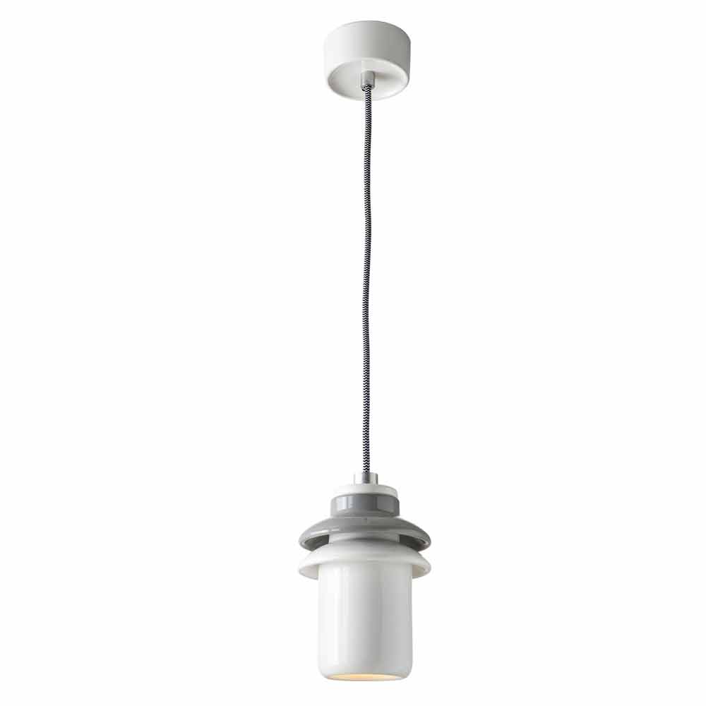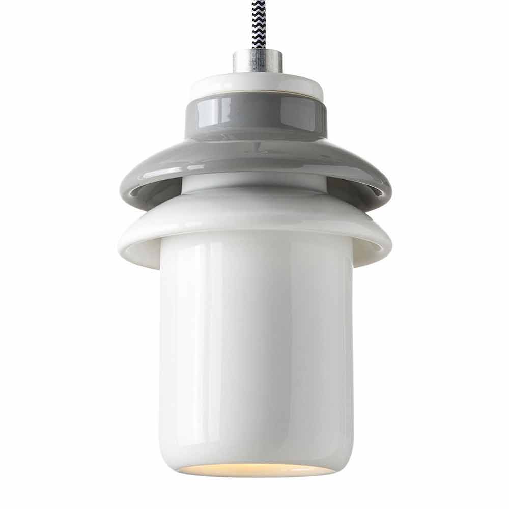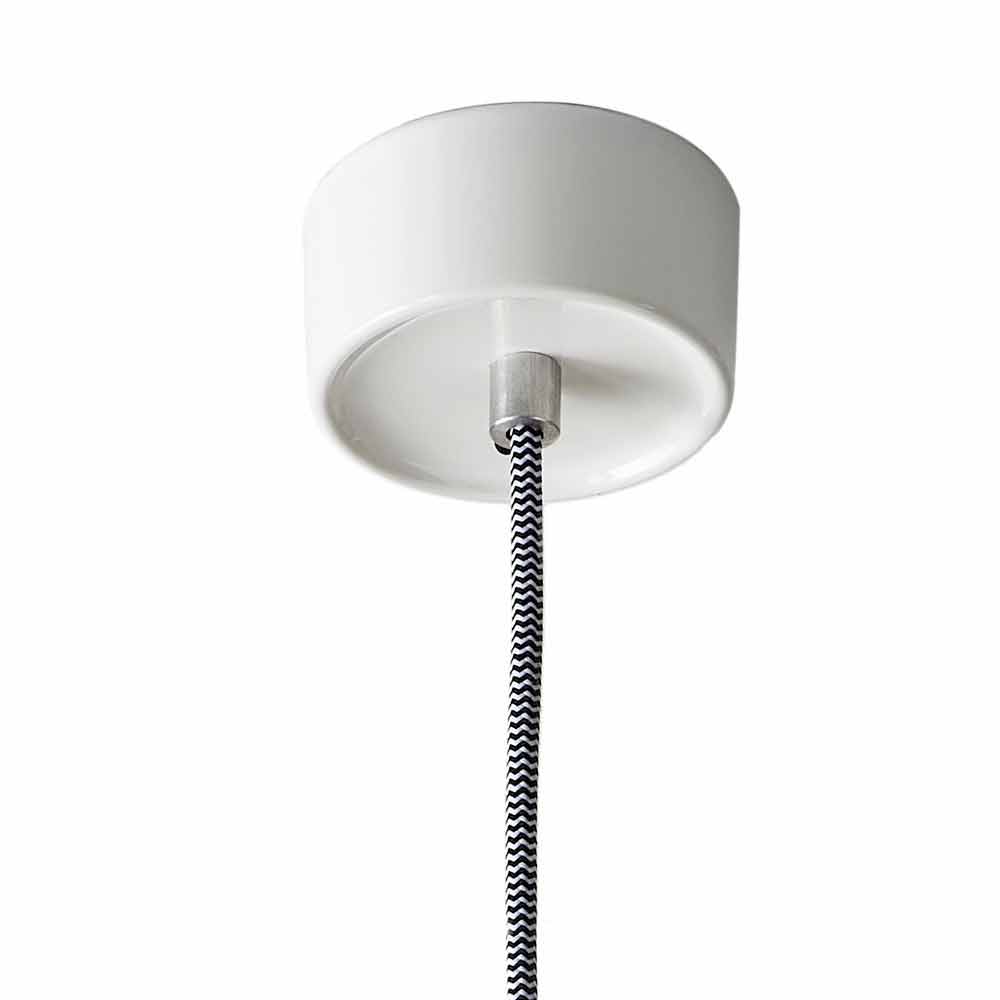 Gemaakt in Italië door bekwame witte en grijze keramische ambachtslieden, met zwarte en witte stoffen kabel en de aluminium kabelklem.