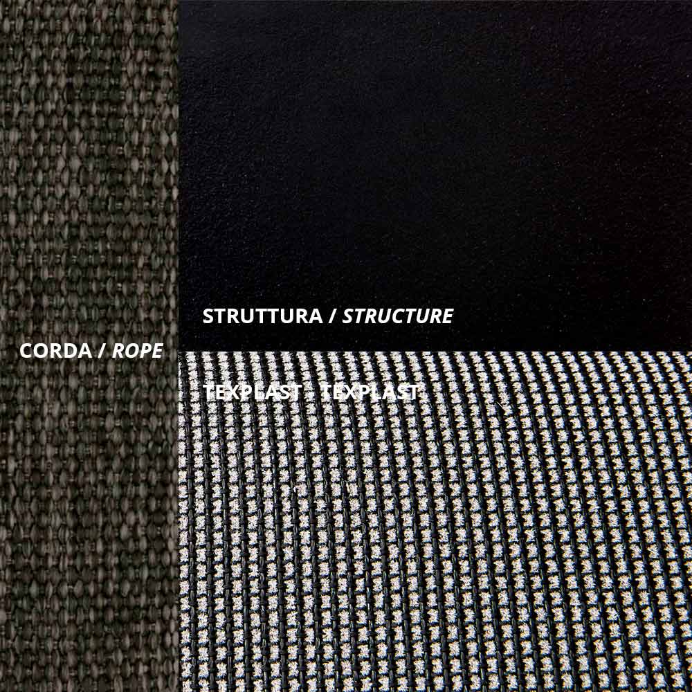- Frame: zwart + Touw: zwart + Kussens: gevoelig zwart