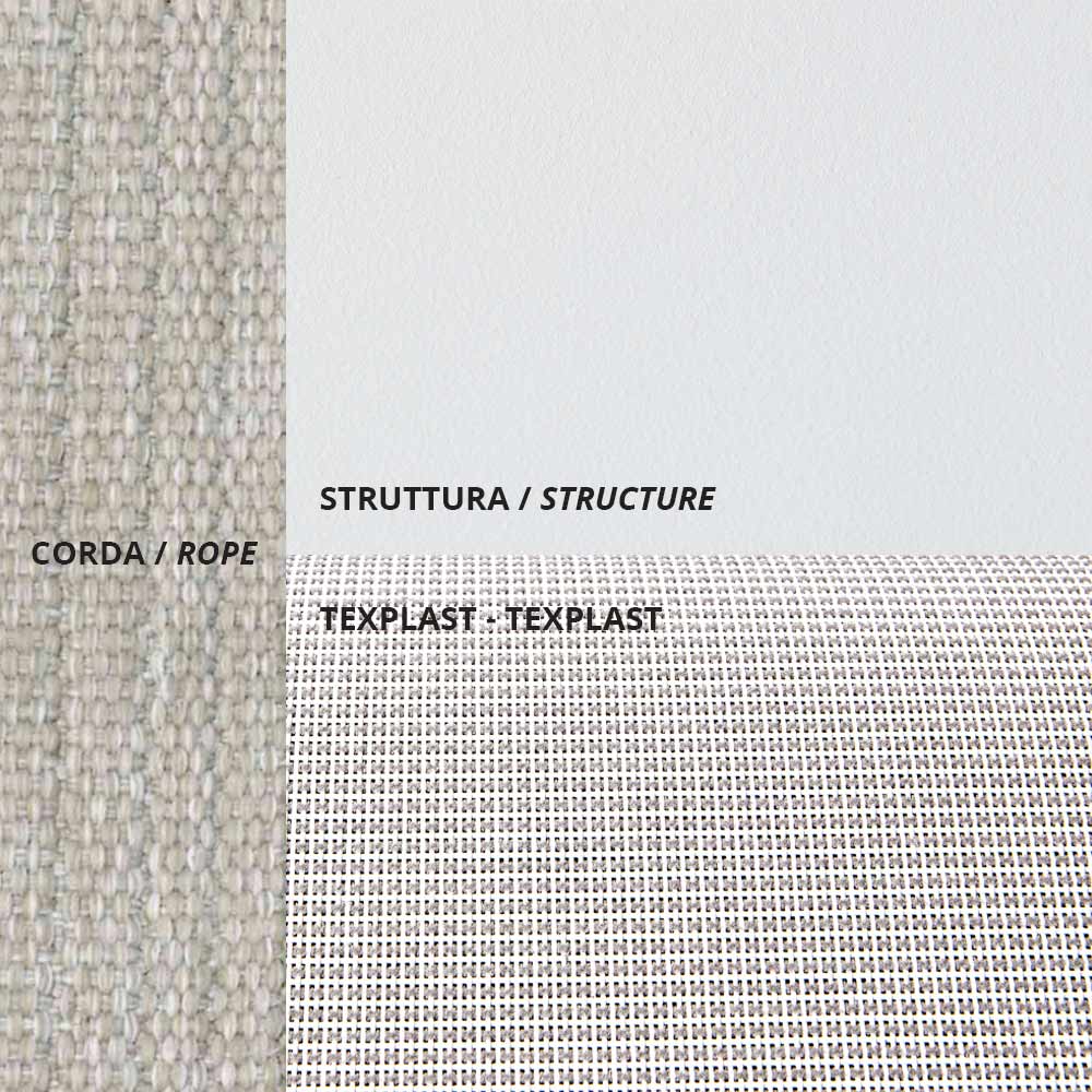 - Structuur: reliëf wit + Touw: modder + Kussens: gevoelig wit