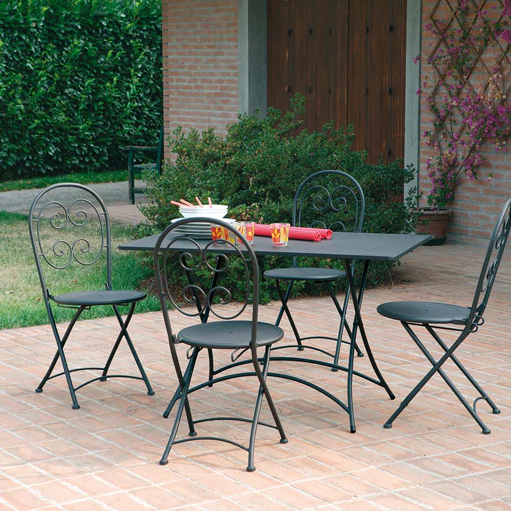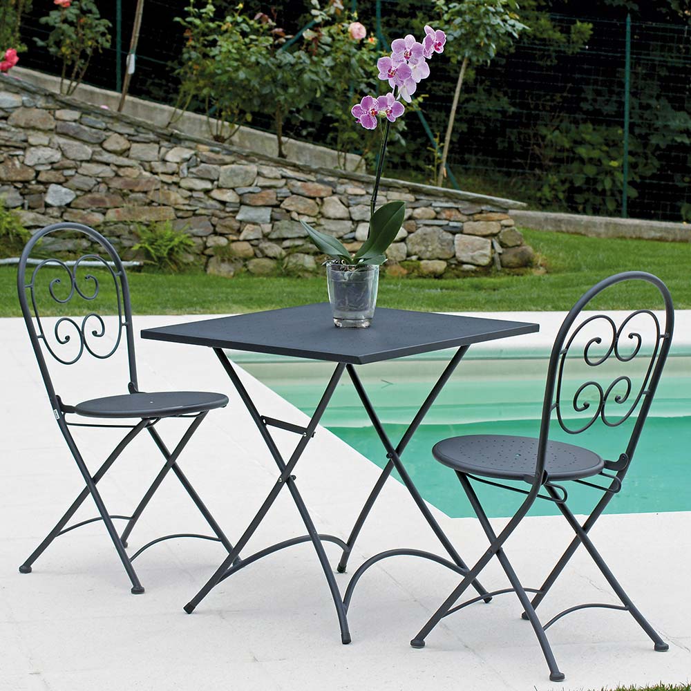 Tuinstoelen gemaakt van antracietgrijs afgewerkt ijzer met antiroestbehandeling , ideaal voor het inrichten van uw buitenruimtes met een vleugje unieke stijl en een sterke moderne persoonlijkheid . De eenvoud van de vormen en de sobere kleurnuance maken het bijzonder veelzijdig dankzij het kleine formaat, de lichtheid en de beheersbaarheid van de structuur. Wat is geboren, is daarom een uniek product in zijn essentie , in staat om de omgeving te verbeteren door een exclusief en fascinerend tintje te geven .