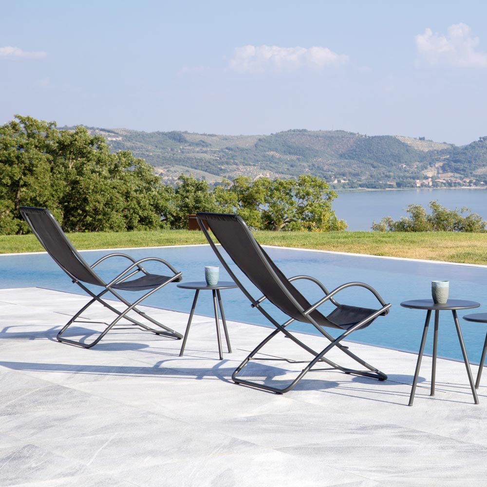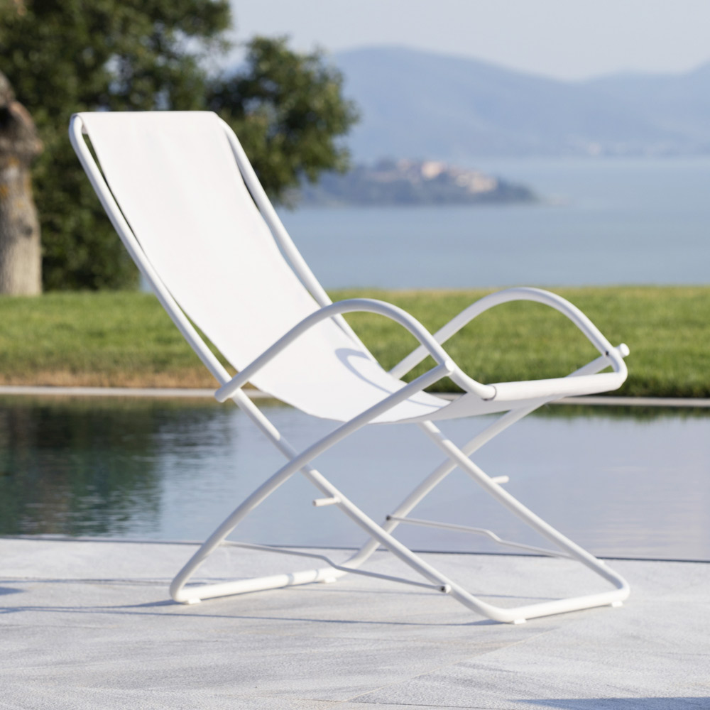 Opvouwbare ligstoel voor buiten, gemaakt van gegalvaniseerd staal. Gemaakt in Italië, 2 stuks.