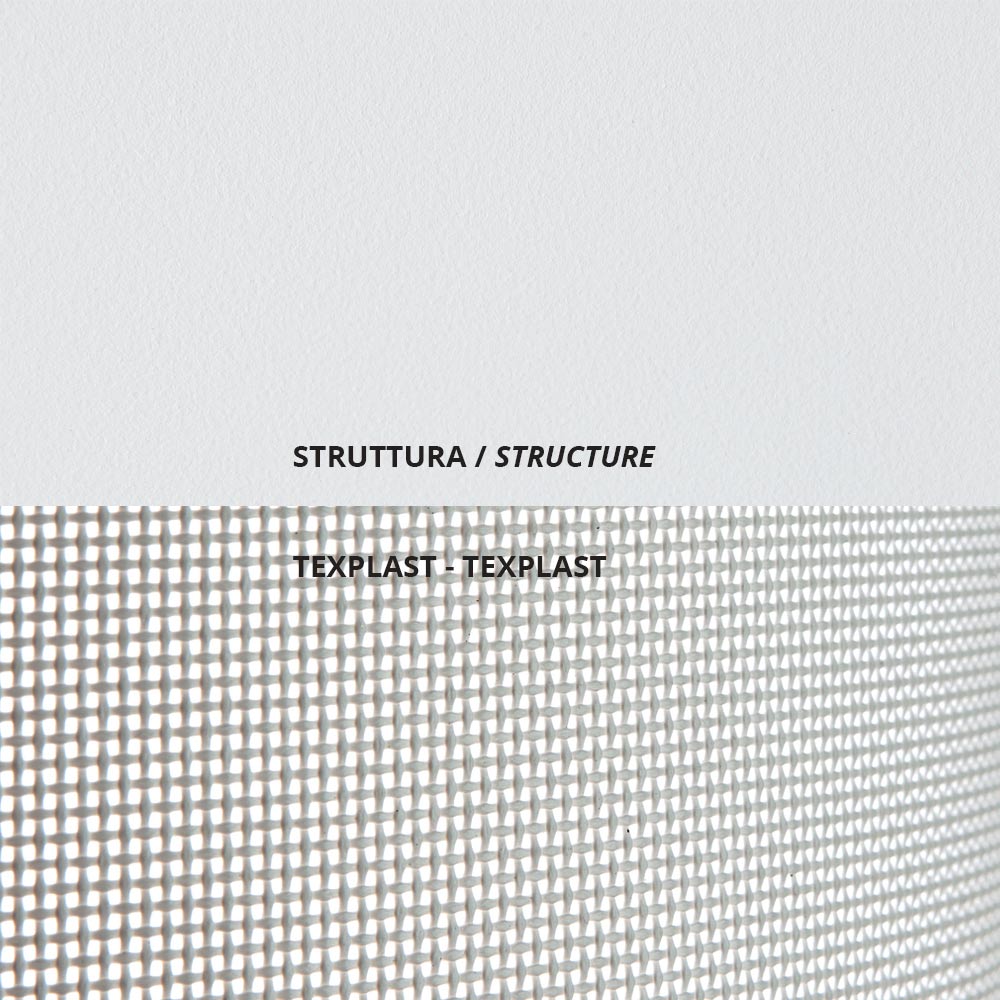 een Texplast zitting, handgemaakt in Italië. De verzinking en de bijzondere eigenschappen van de Texplast stof maken de ligstoel