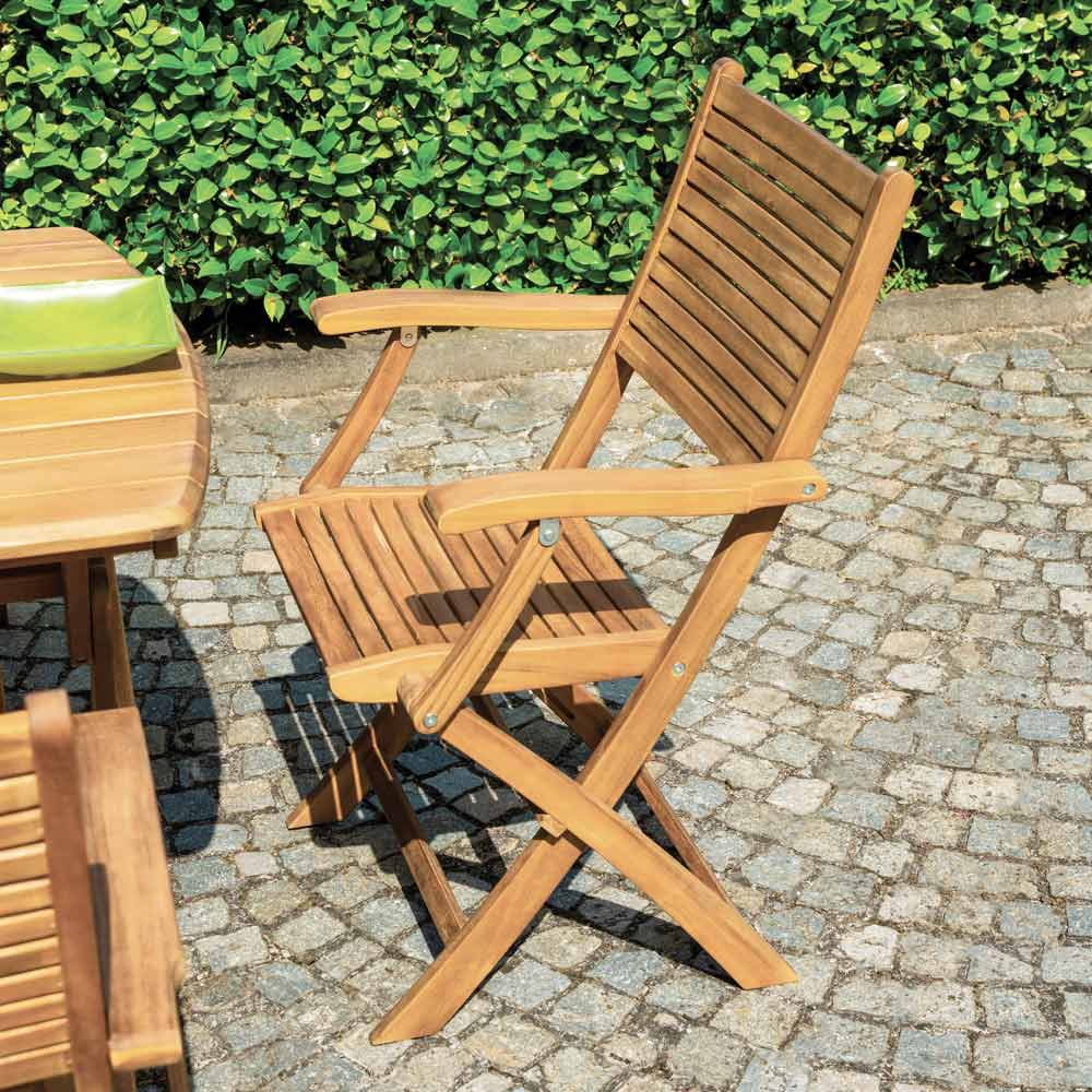 Deze klapstoel van acaciahout is perfect voor in de tuin. Deze vakkundig vervaardigde stoel combineert functionaliteit en design om buitenshuis een uitzonderlijke comfortervaring te bieden.