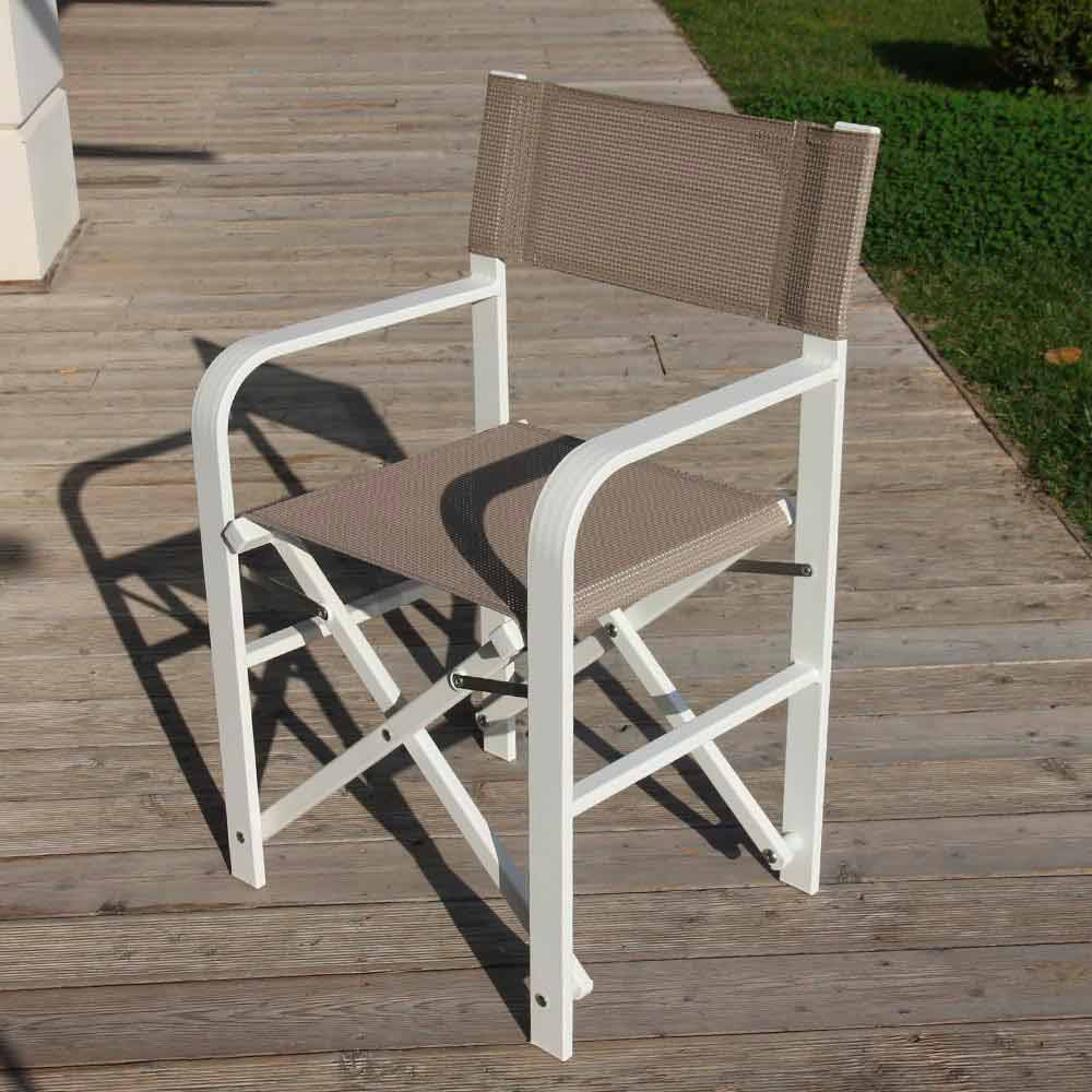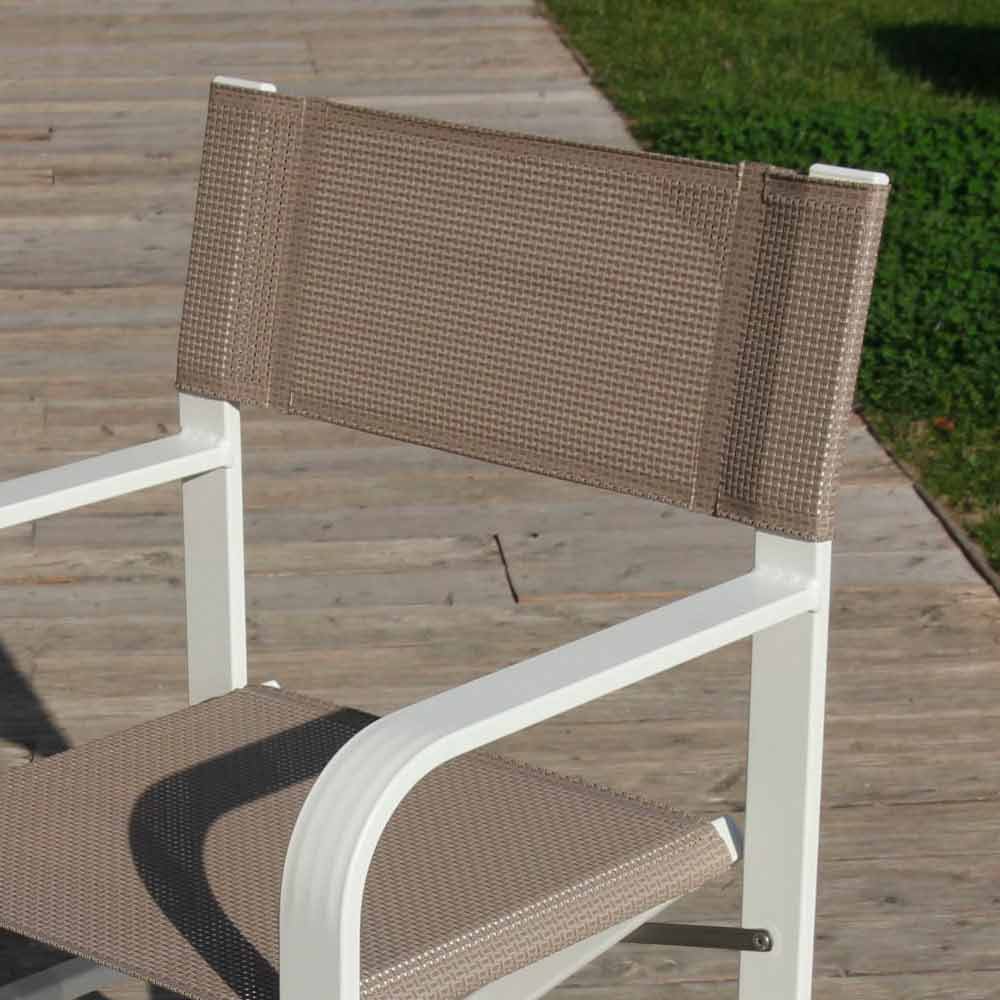 Buitenstoel met structuur in gepoedercoat aluminium en zitting in doorlopende draad van polyester bedekt met pvc, gemaakt in Italië . Een inrichtingsoplossing voor buitenomgevingen, ideaal voor liefhebbers van functionaliteit en functionaliteit, elementen die worden verleend door de comfortabele en gastvrije zitting en de opvouwbare structuur waarmee u de stoel gemakkelijk kunt sluiten voor een minimale afmeting . Dankzij het moderne en essentiële ontwerp past het zich perfect aan de meest uiteenlopende contexten aan en brengt het zijn sobere en eclectische persoonlijkheid met zich mee . De verschillende beschikbare afwerkingen geven het ook een bijzonder veelzijdig karakter, waardoor het op de best mogelijke manier aan elke vraag en behoefte kan voldoen. De hoogwaardige materialen die worden gebruikt in combinatie met het 100% Made in Italy-vakmanschap brengen een lichte en extreem robuuste stoel tot leven, ideaal voor buitenmeubilair van bars, tuinen maar ook stranden en zwembaden.