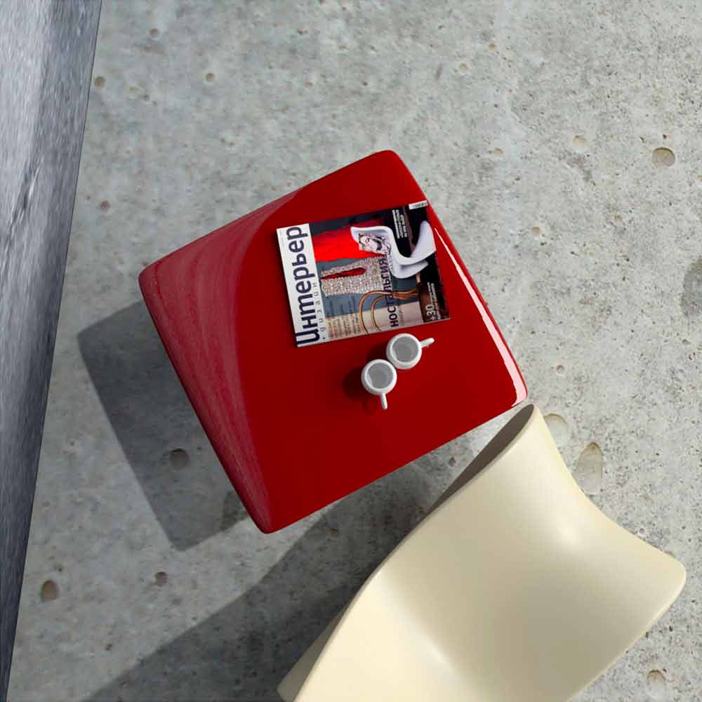 Origami , salontafel die is geïnspireerd op de typische Japanse papieren sculpturen, de eenvoudigste vormen aanneemt en de hoekigheid verzacht.