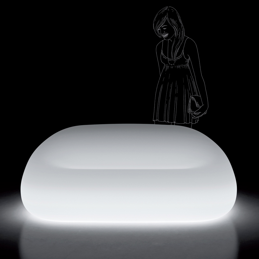 Design 2-3-zitsbank in polyethyleen met LED-verlichting Made in Italy.