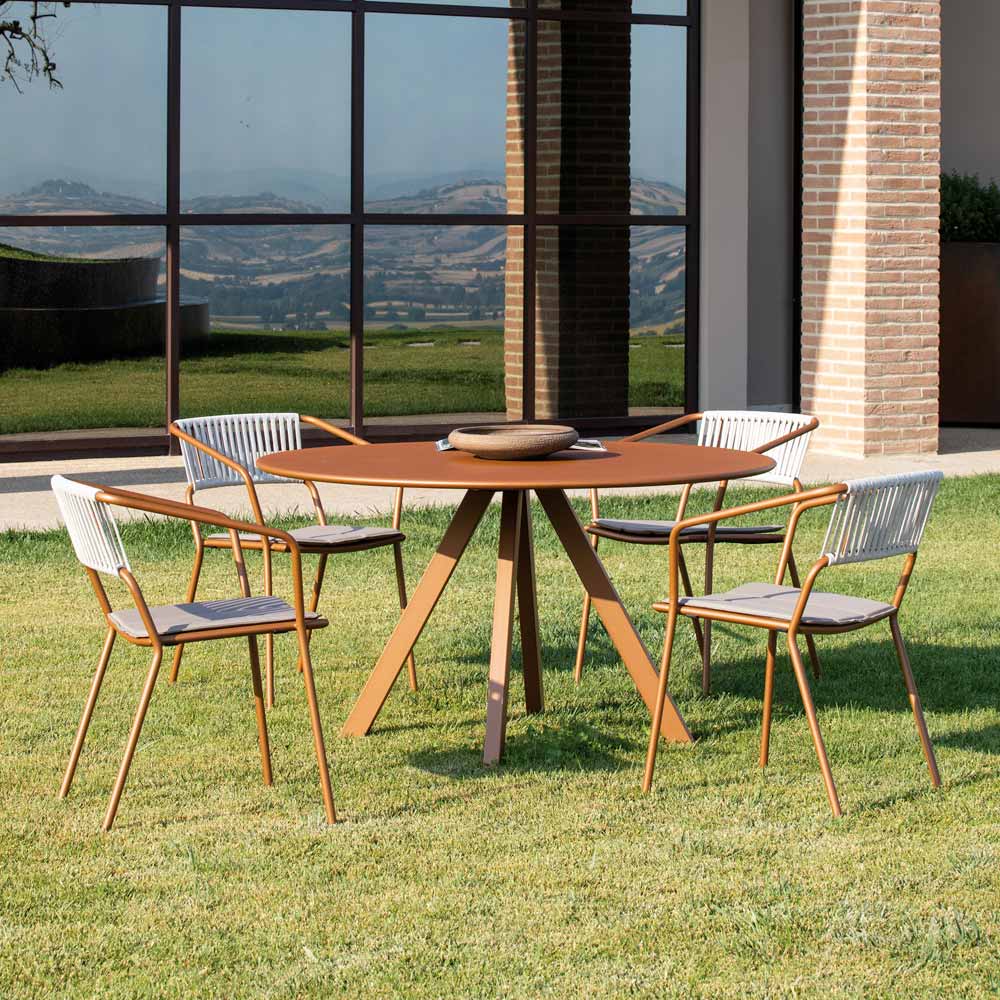 Deze lijn buitenproducten is ontworpen om de ontspanning in uw buitenruimte te vergroten met een extreem bestendig meubelstuk , 100% made in Italy . Deze fauteuil heeft een stalen constructie die versterkt is door een galvanisatieproces en is gemaakt van materialen die een hoge weerstand hebben tegen corrosieve en atmosferische invloeden.