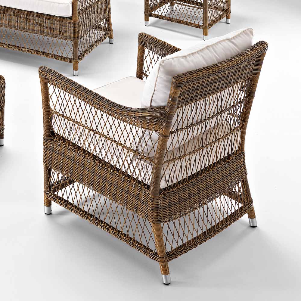 De weefstijl is verfijnd en delicaat en samen met de zeer hoge kwaliteit van de materialen en de doorslaggevende vormen maken deze fauteuil perfect voor het inrichten van interieurs en exterieurs, zowel privé als contractomgevingen zoals terrassen, veranda's, tuinen maar ze vinden ook een perfecte plaats bij het zwembad.