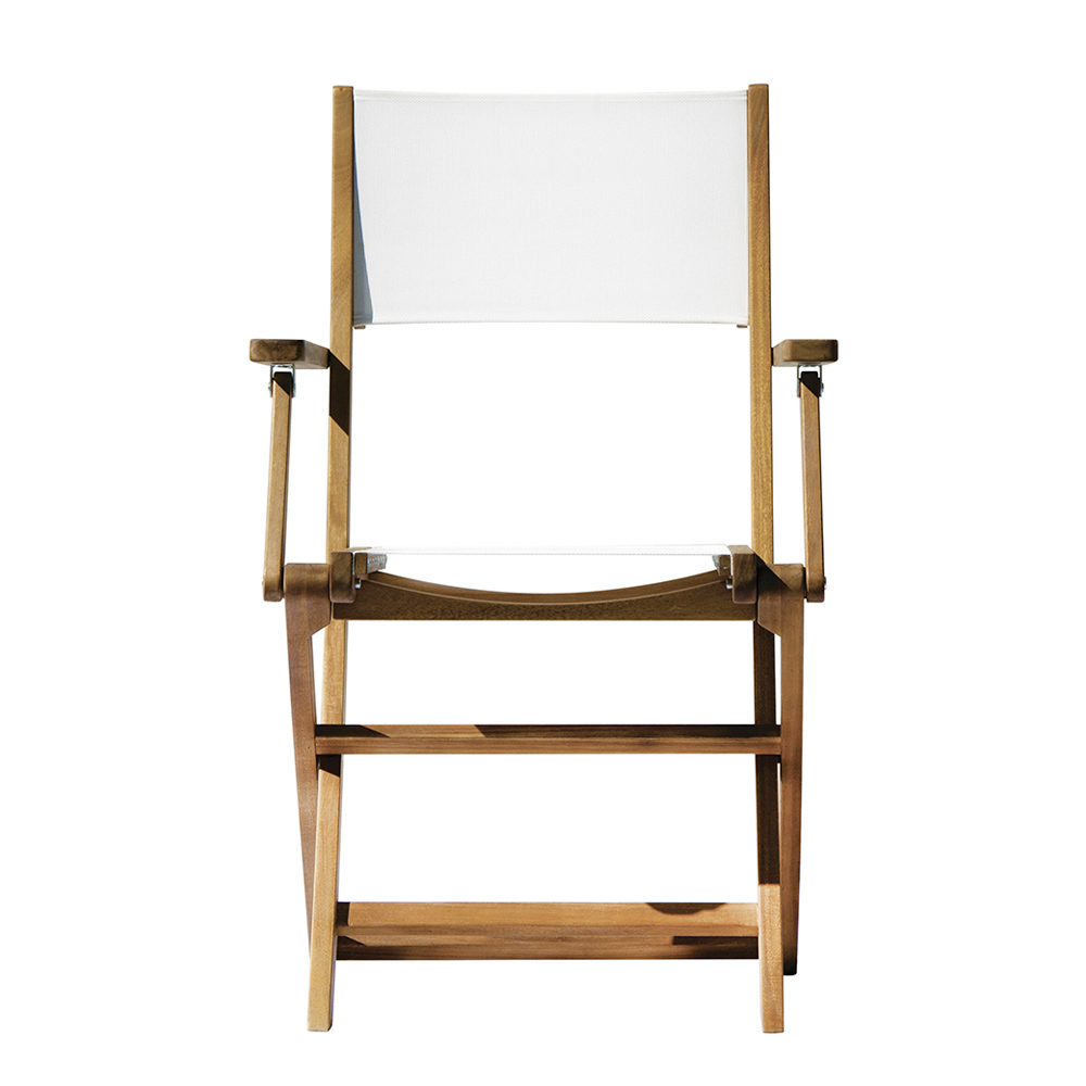 Acaciahout , bekend om zijn duurzaamheid en weerbestendigheid, zorgt ervoor dat deze stoel zijn natuurlijke schoonheid en structurele integriteit in de loop van de tijd behoudt. De zitting en rugleuning van ecru-textiel , een innovatief en resistent materiaal, voegen een vleugje moderniteit en frisheid toe en passen harmonieus in elke buitenomgeving.
