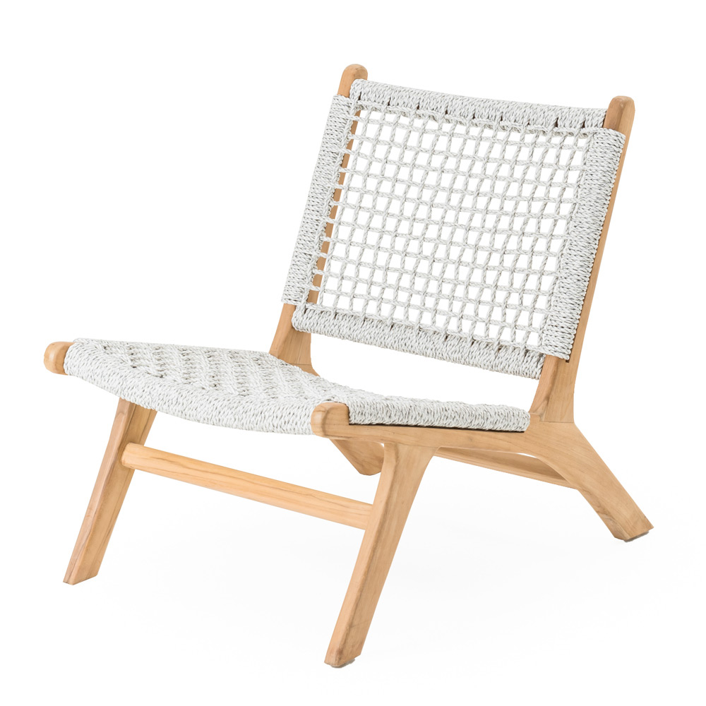 Deze fauteuil combineert de schoonheid van teakhout met de ambachtelijke wijsheid van het weven.