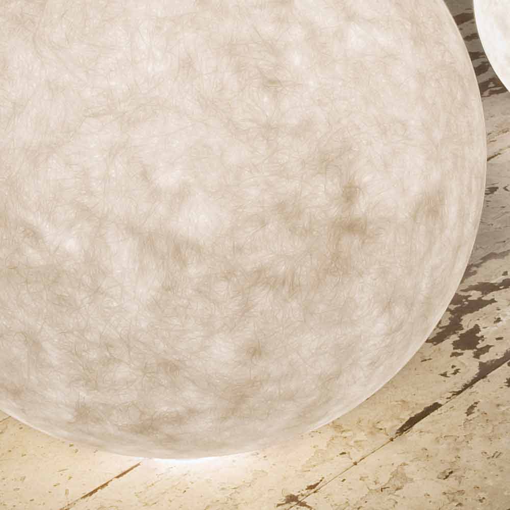 Geproduceerd in laprene en Nebulite®, een materiaal samengesteld uit hars en vezels, waarvan de aders de lamp een bepaald "maan-effect" geven.