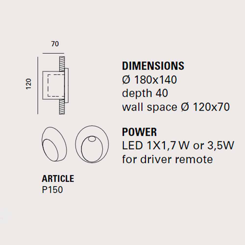 De ovale wandlamp van Toscot is ontworpen voor buitenomgevingen. Eenvoudige muurpadmarkering die dankzij zijn zacht ovale vorm perfect in elke binnen- of buitenmuur integreert.