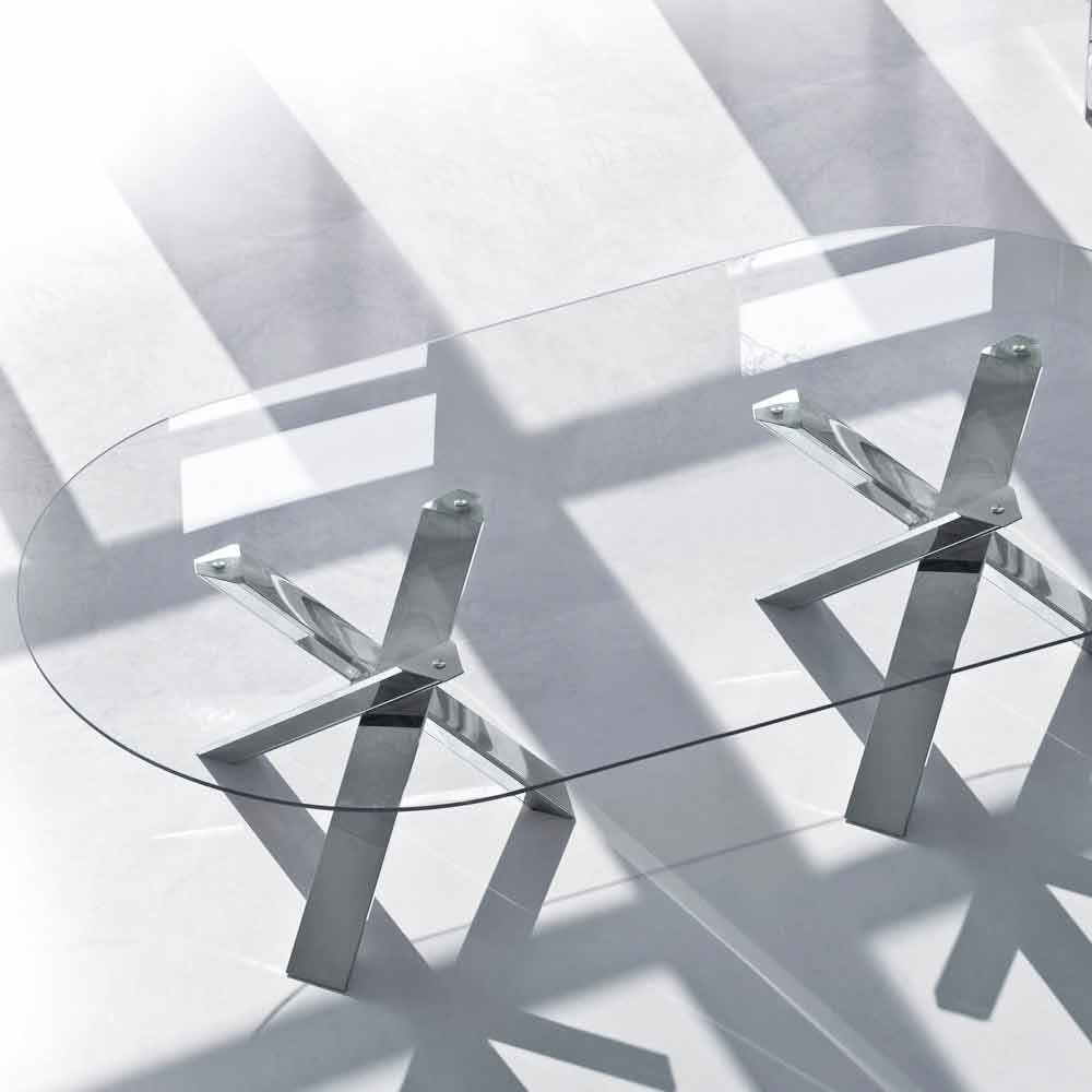 Transparantie en reflecties van licht zijn de woorden die bij je opkomen als je naar deze tafel kijkt met een exclusief ontwerp, uniek gemaakt door een volledig gemaakt in het productieproces van Italië.