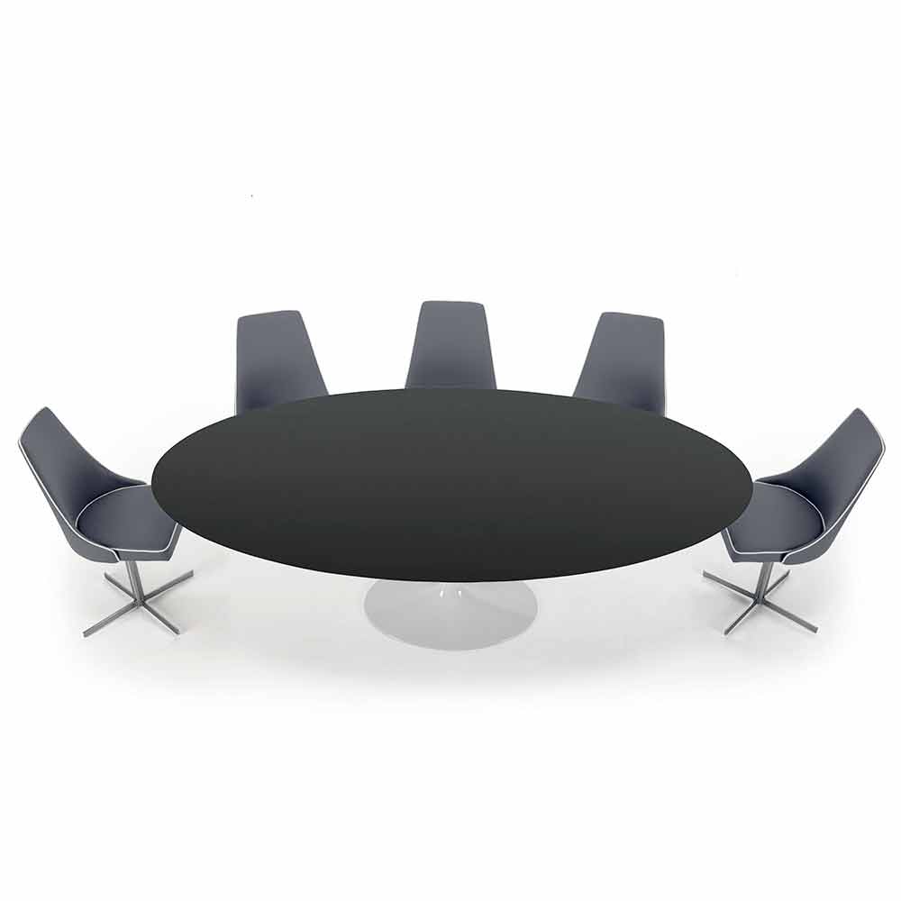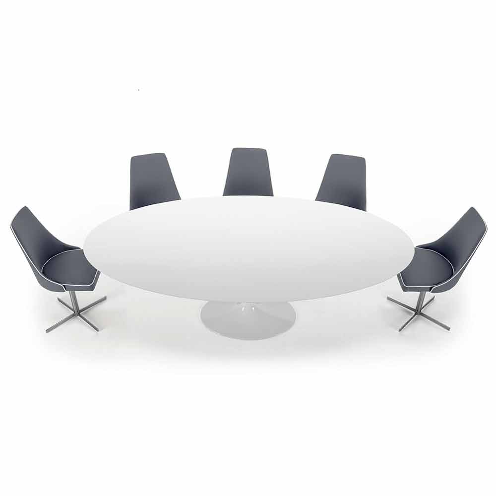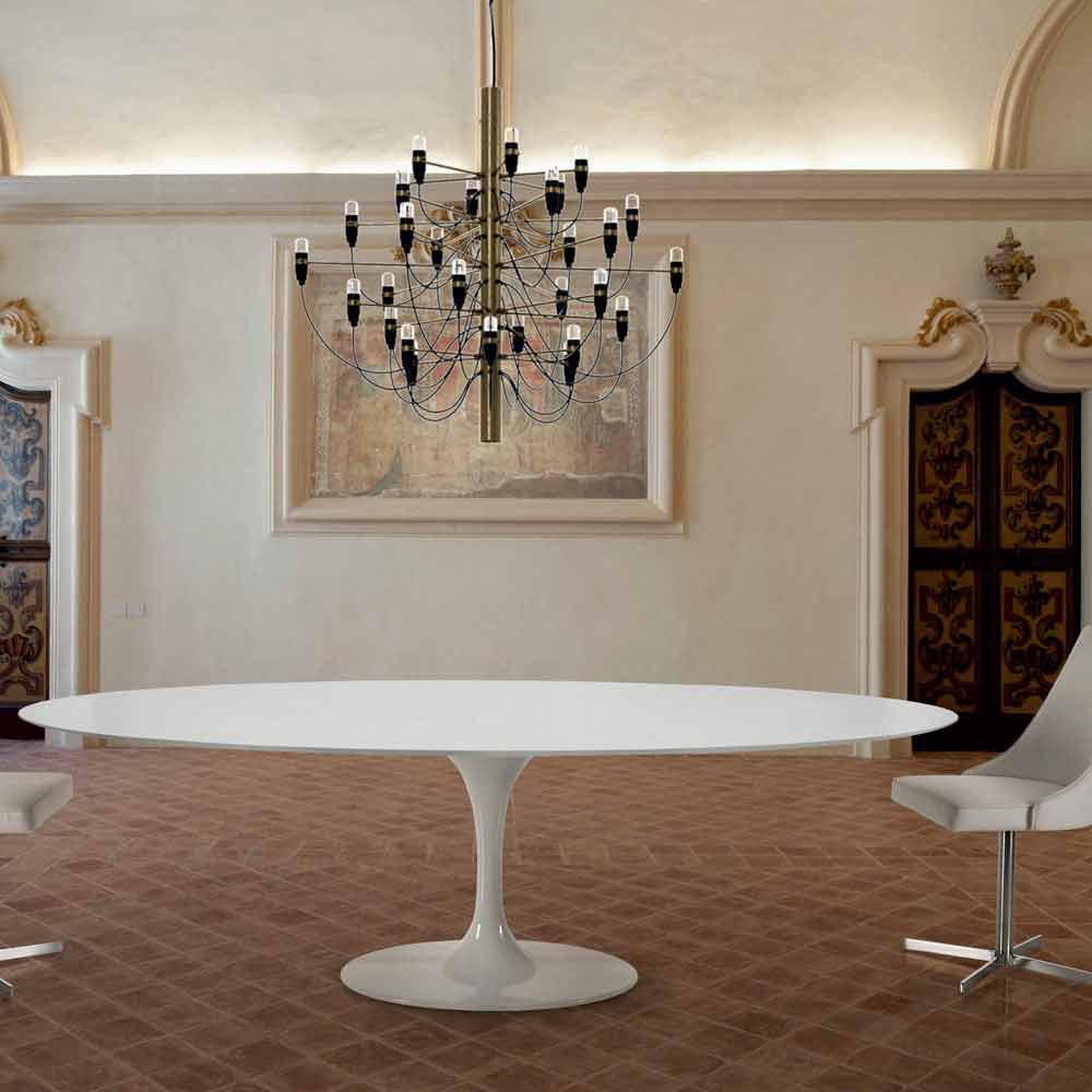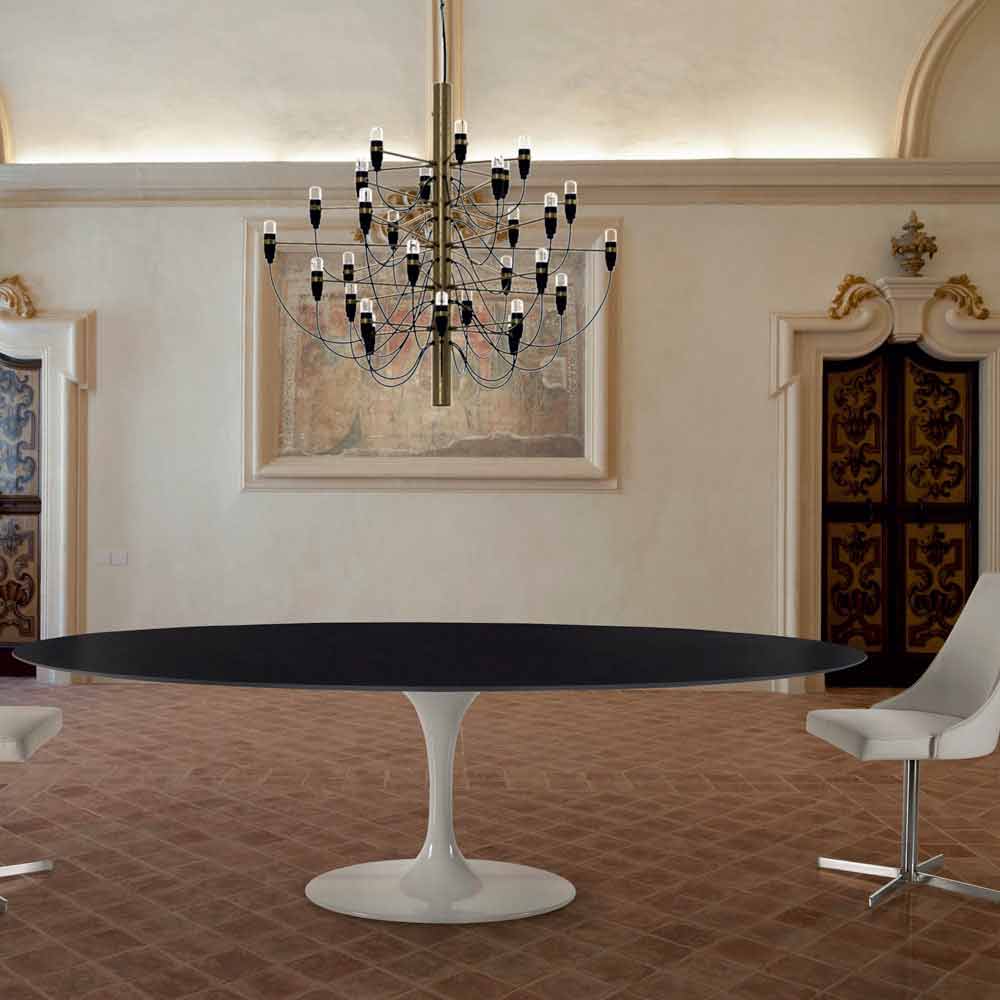 Eettafel met ovaal blad van vloeibaar laminaat gemaakt in Italië, hoge kwaliteit.