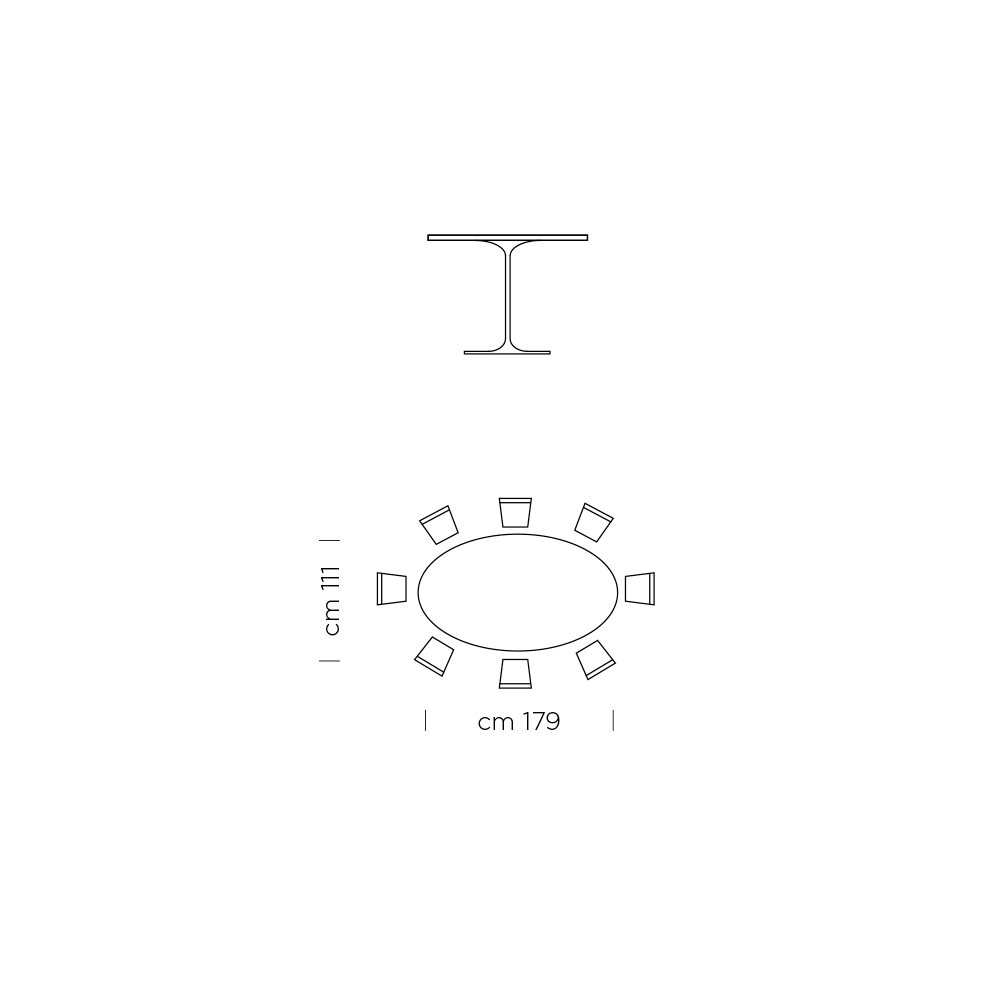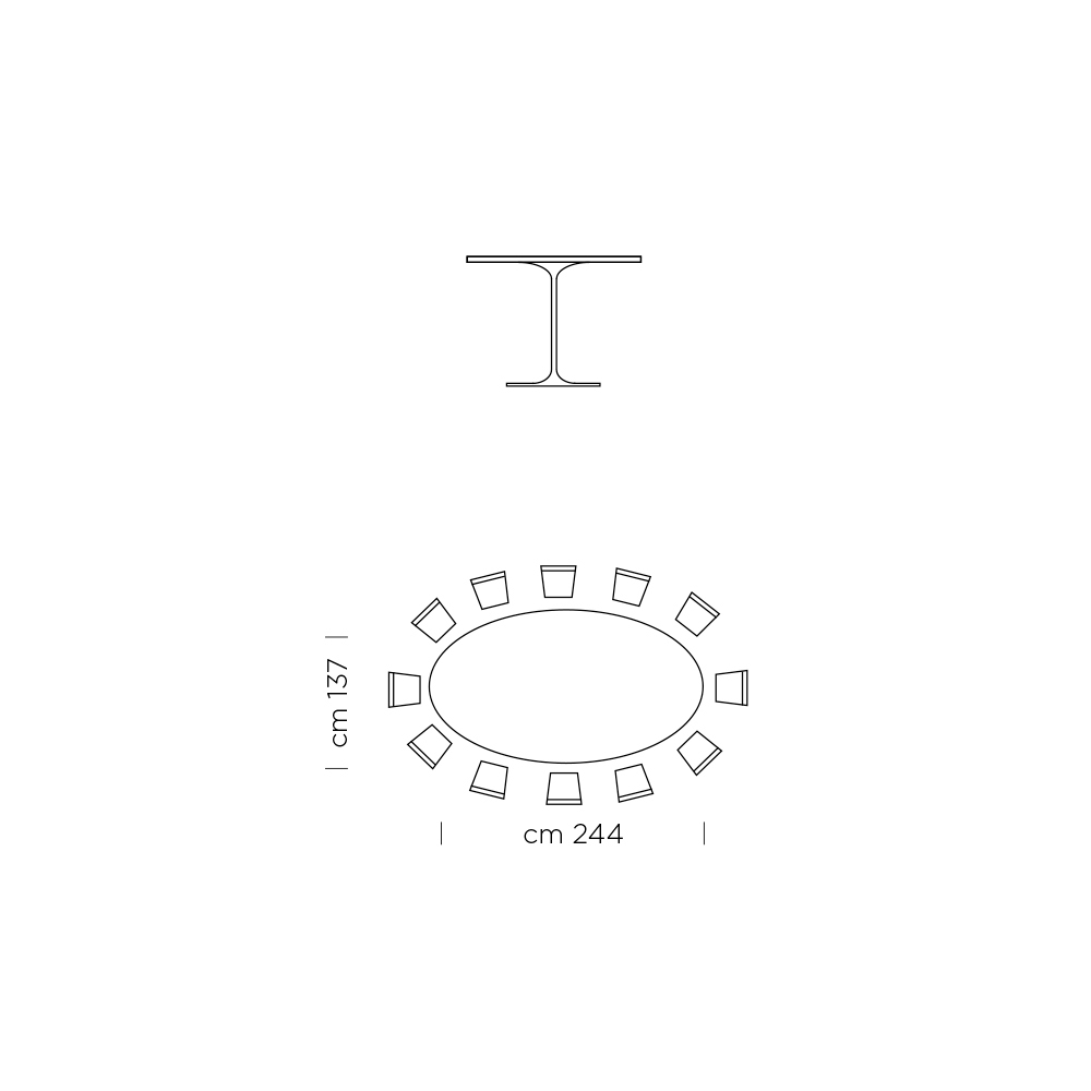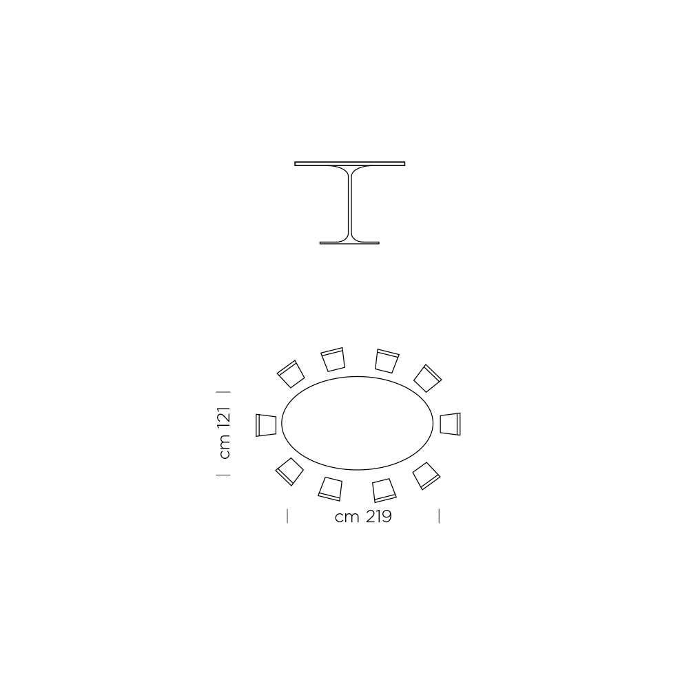 originele ovale vorm van het blad en de bijzondere vorm van het onderstel, die het unieke karakter van deze prachtige eettafel belichaamt. Samen met de sterke visuele component presenteert het ook een