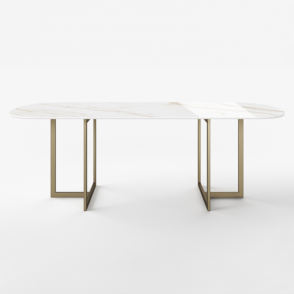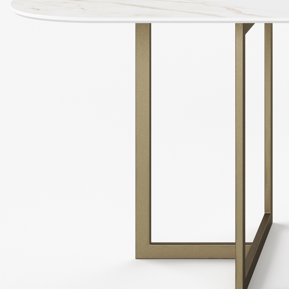 Eettafel in porseleinen steengoed met marmer en metaaleffect Gemaakt in Italië.