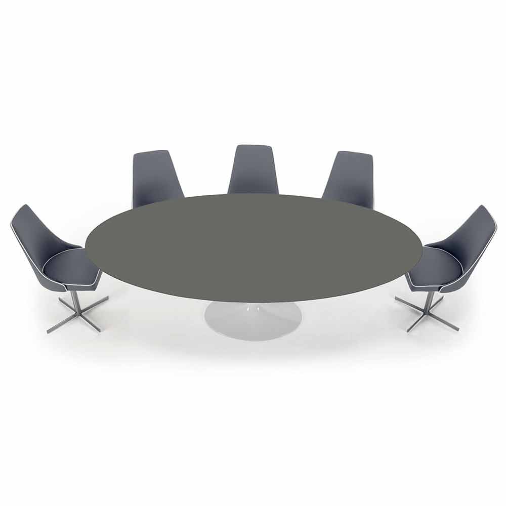 Ovale eettafel gemaakt in Italië met fenix blad en aluminium onderstel.