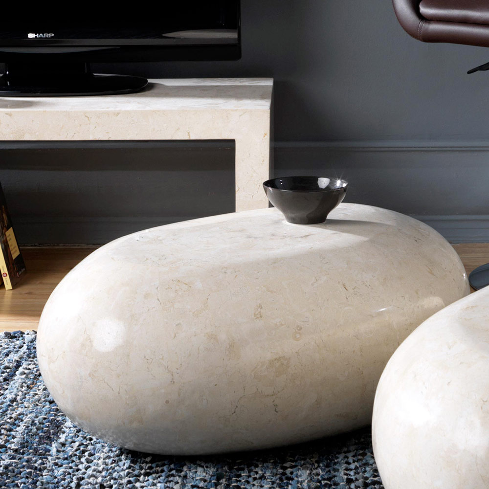 Moderne salontafel in fossiele steen.