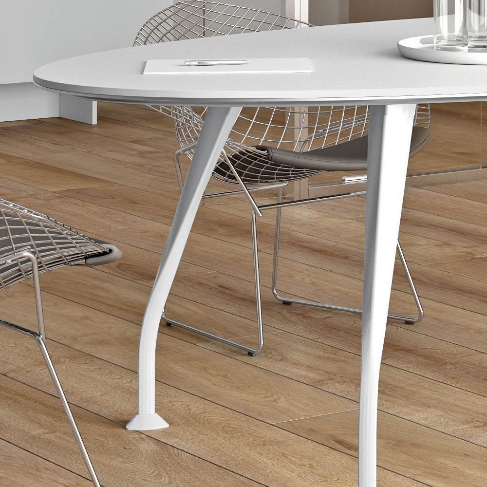 Deze tafel bestaat uit een ovaal melamine blad in de witte finish en 4 Infinity poten, eveneens in de mat witte finish.