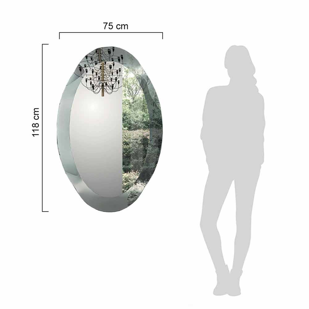 Ovale wandspiegel gemaakt in Italië met binnenspiegel en 6 mm gebogen glazen frame in spiegelkristalafwerking .