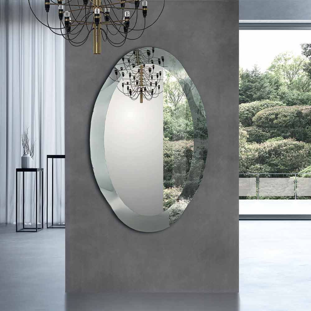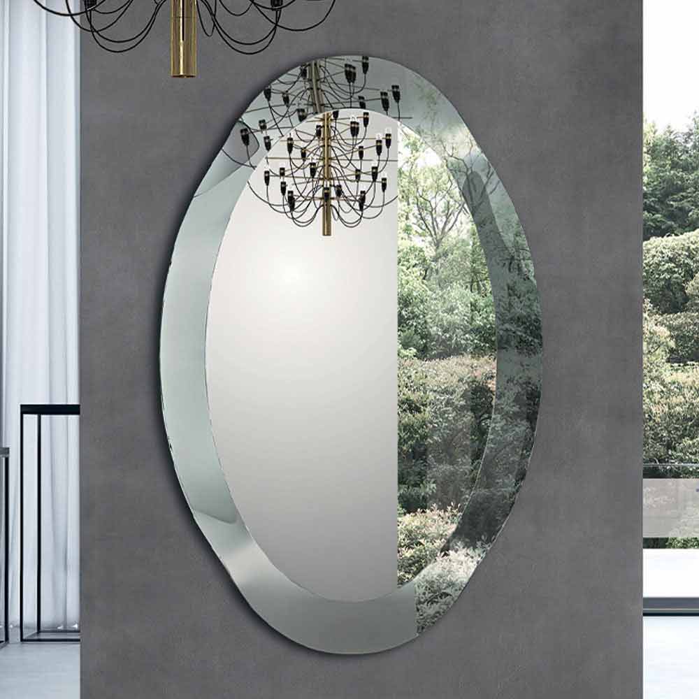 Moderne ovale spiegel met gebogen glazen frame met kristaleffect Made in Italy.