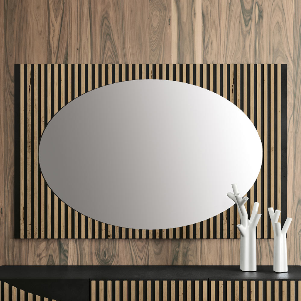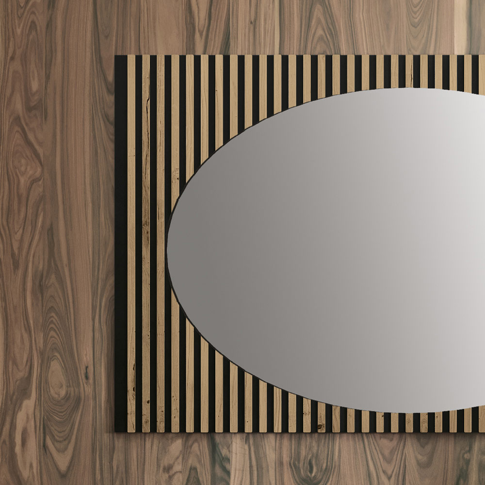 Praktisch en esthetisch komen samen in deze wandspiegel , gemaakt in Italië met hoogwaardige materialen. Het paneel is gemaakt van eiken geribbeld MDF met een afwerking van Scandinavisch geknoopt eiken en houtskool .