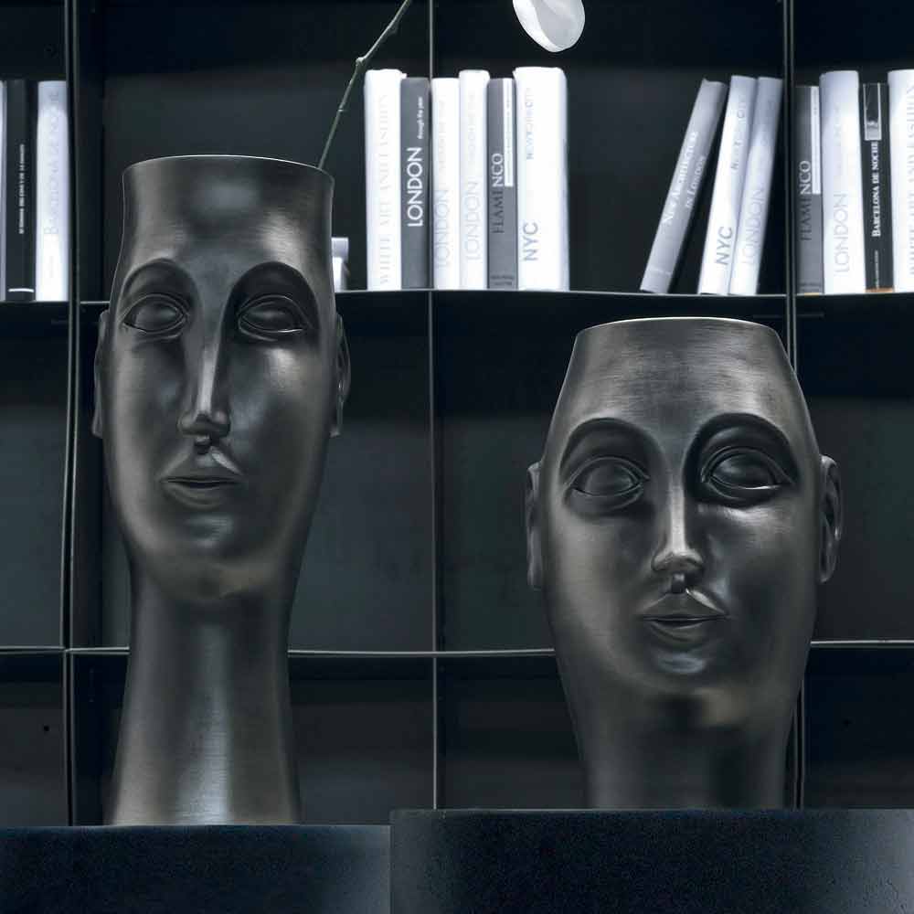 Compositie van keramische vazen in de vorm van een gezicht, Made in Italy.