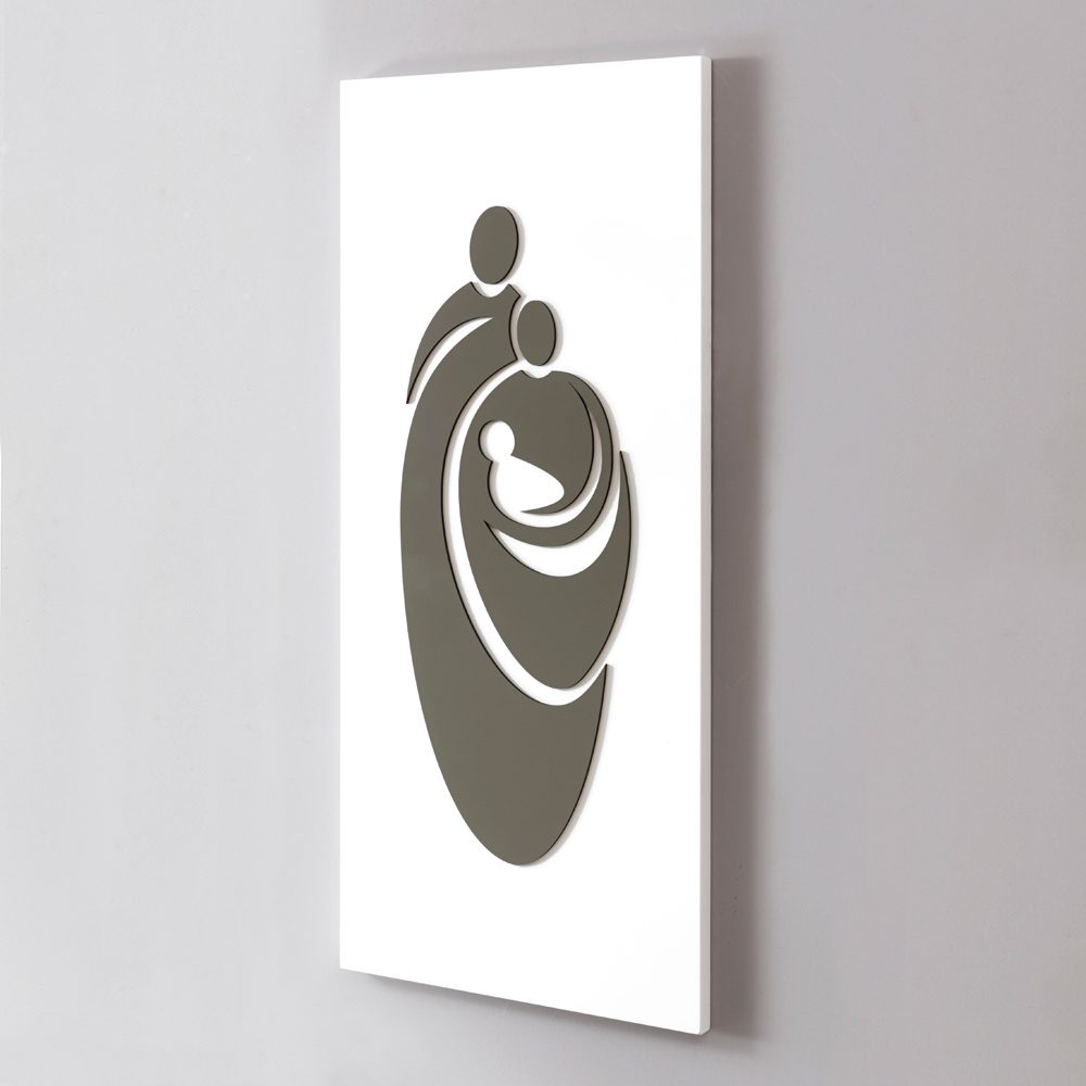 Heilig geraamte in wit gelakt hout met duifgrijs gelakte houtapplicatie van de gestileerde Heilige Familie .