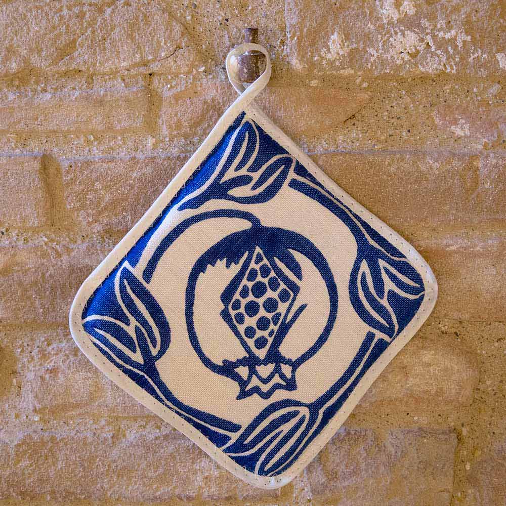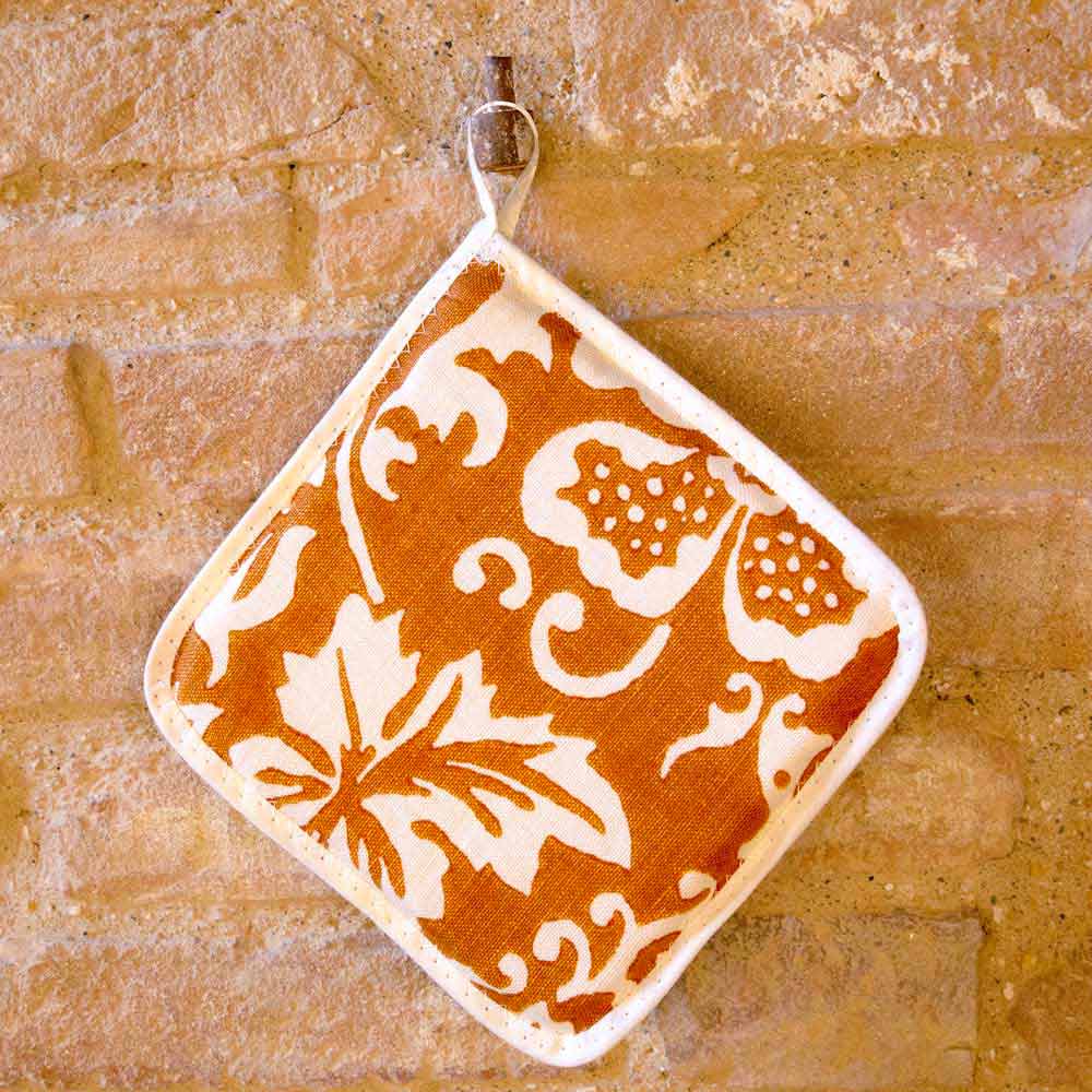 Pannenlappen in puur linnen van hoog Italiaans vakmanschap versierd met oud handgedrukt ontwerp, verkrijgbaar in vijf varianten, een uniek kunstwerk gemaakt in Italië.