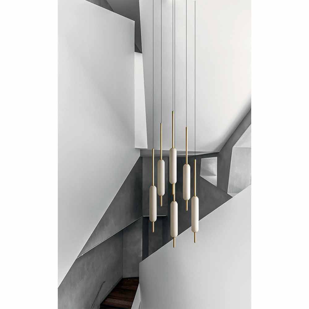 Hanglamp 1, 3 of 6 ledlampen voor woonkamer in glas en natuurlijk messing, made in Italy.