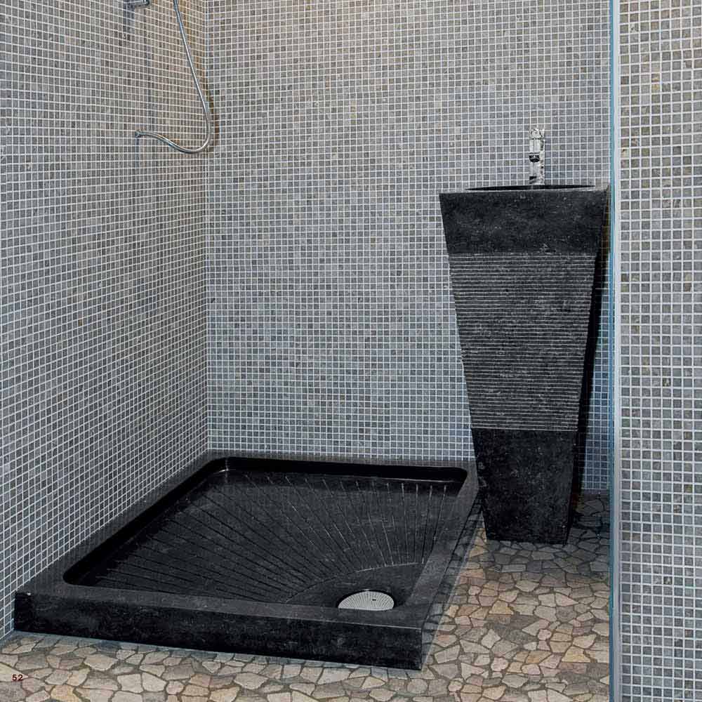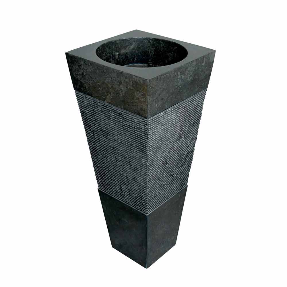 Wastafel omgekeerde piramide-vormige kolom in zwart Nias model natuursteen.