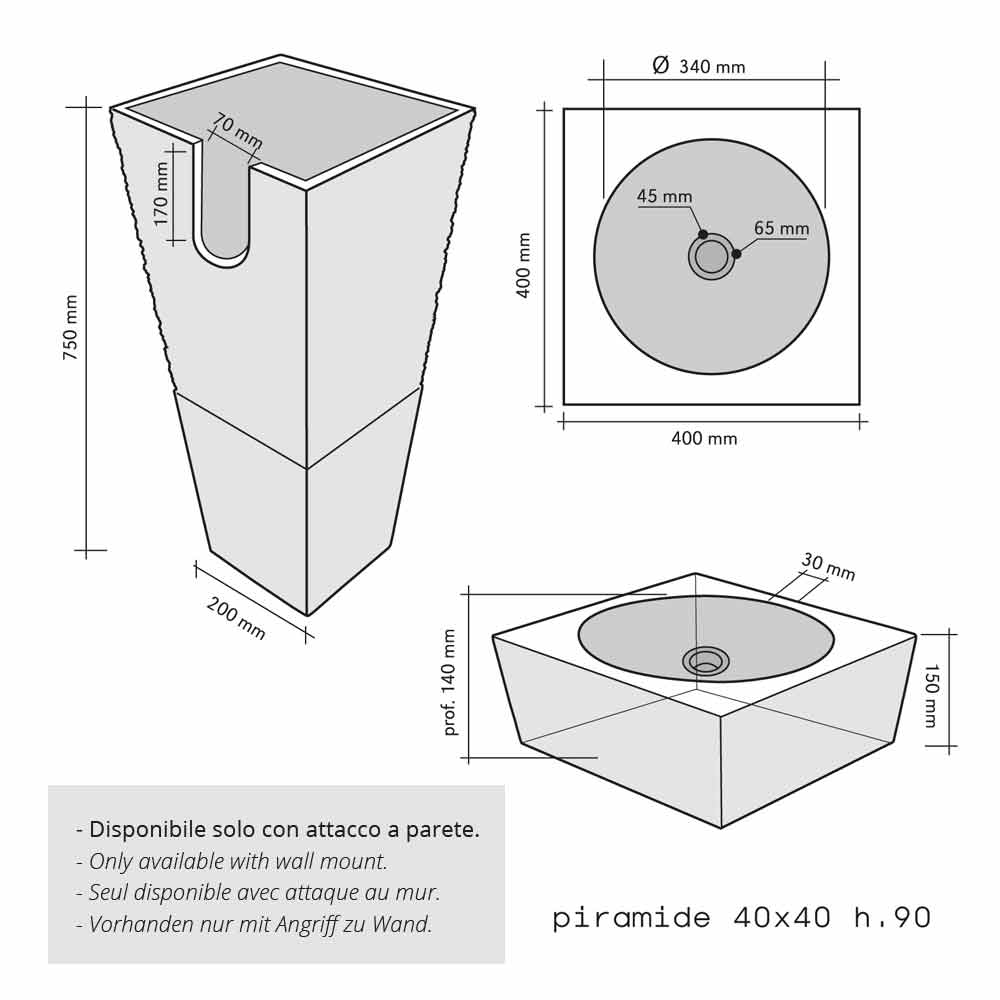 Wastafel piramide Column Stone Natural Black Nias