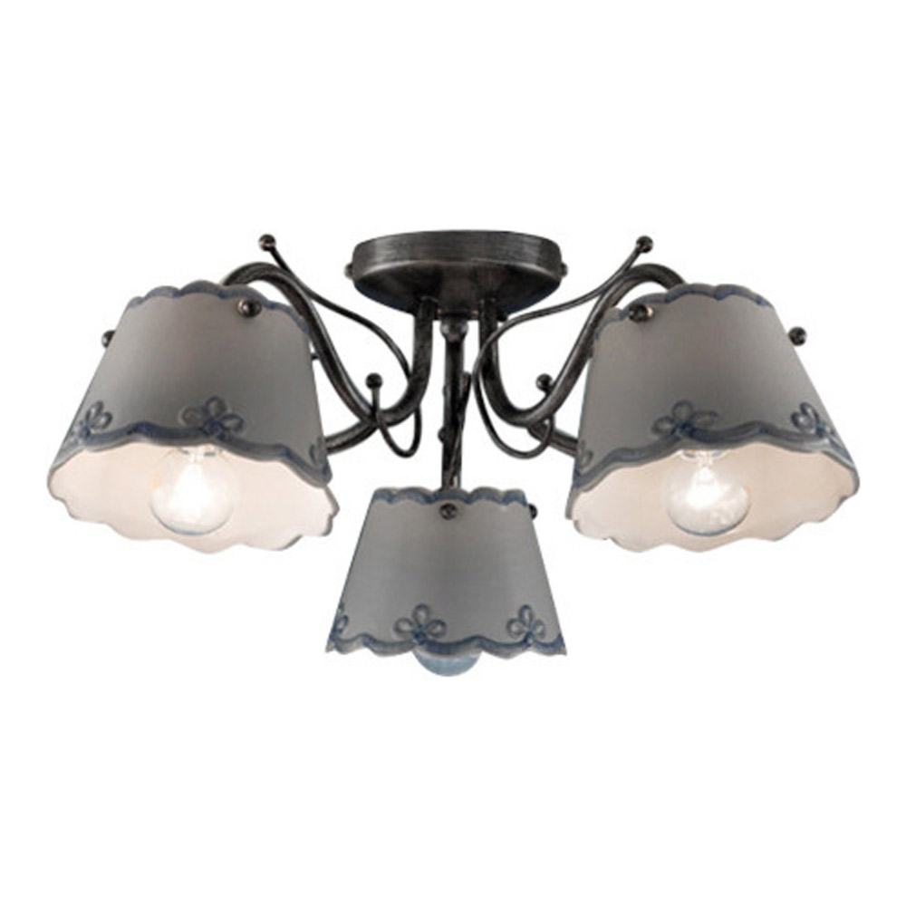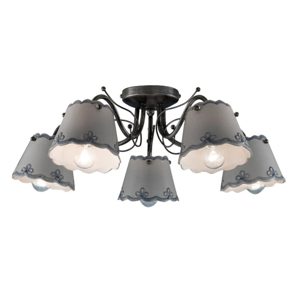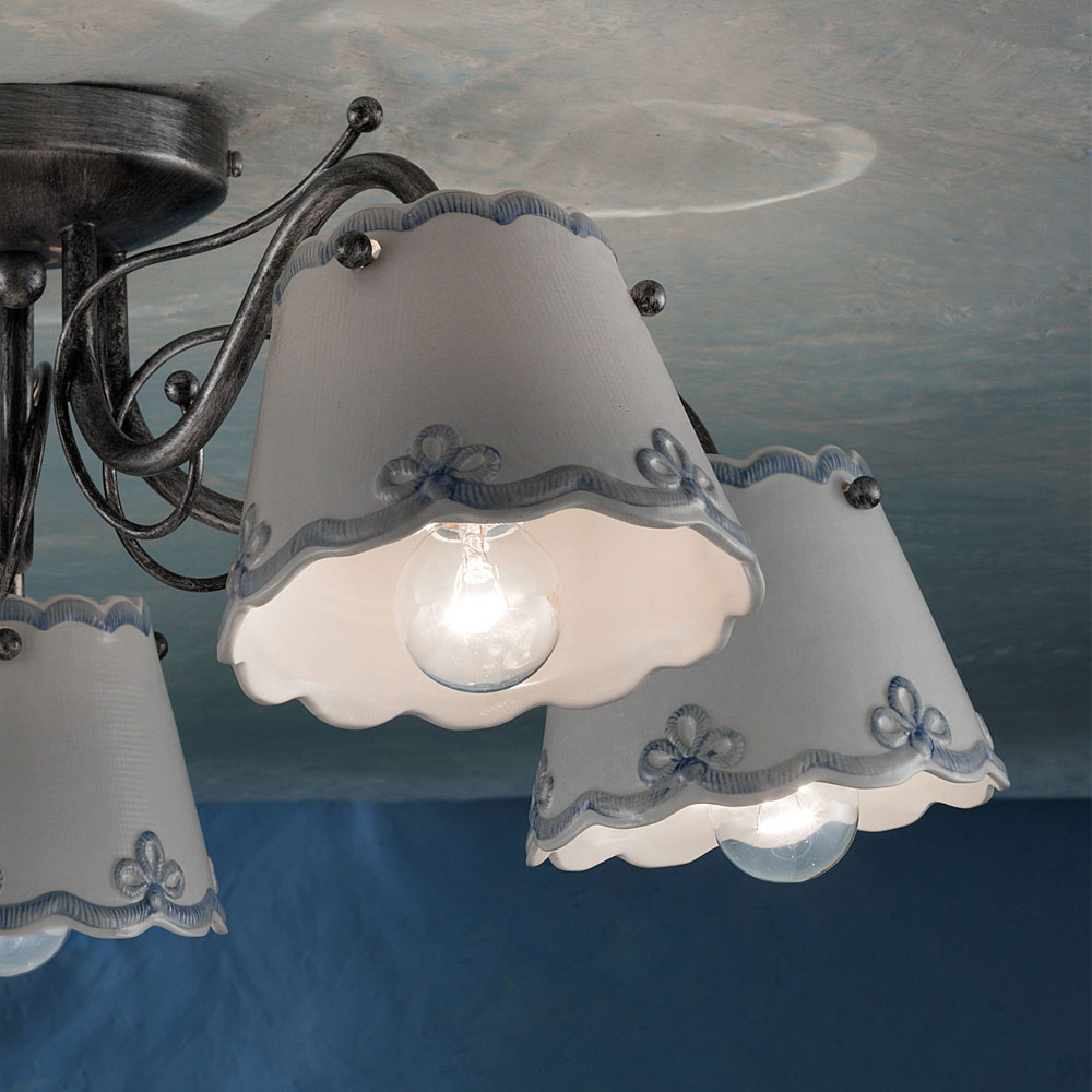 Plafondlamp 3 of 5 lichts vervaardigd in metaal en keramiek met borduureffect, gemaakt in Italië door Ferroluce.