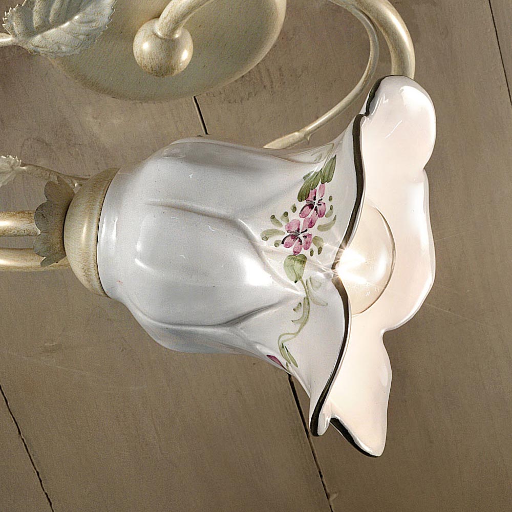 Plafondlamp van metaal en keramiek met handgeschilderde rozen gemaakt in Italië door Ferroluce.