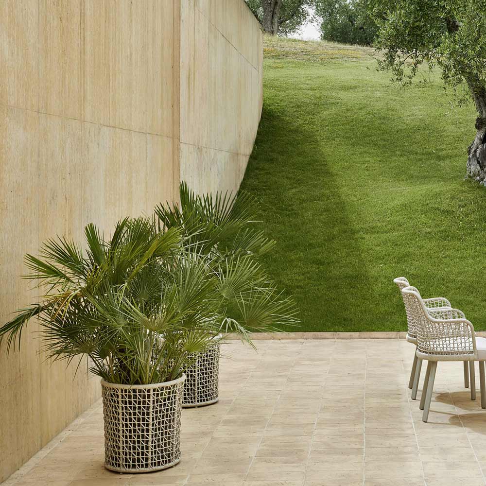 Buiten plantenbak met schotel samengesteld uit een gepoedercoate aluminium structuur en handgeweven beige finish touw . Gekenmerkt door een essentieel ontwerp , is dit product bedacht en ontworpen om een praktische oplossing te vertegenwoordigen en tegelijkertijd elke buitenruimte te verrijken met een vleugje moderne en verfijnde persoonlijkheid .
