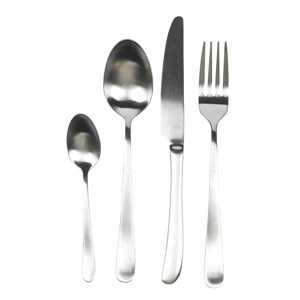 - De set bestaat uit 6 messen, 6 vorken, 6 lepels, 6 theelepels