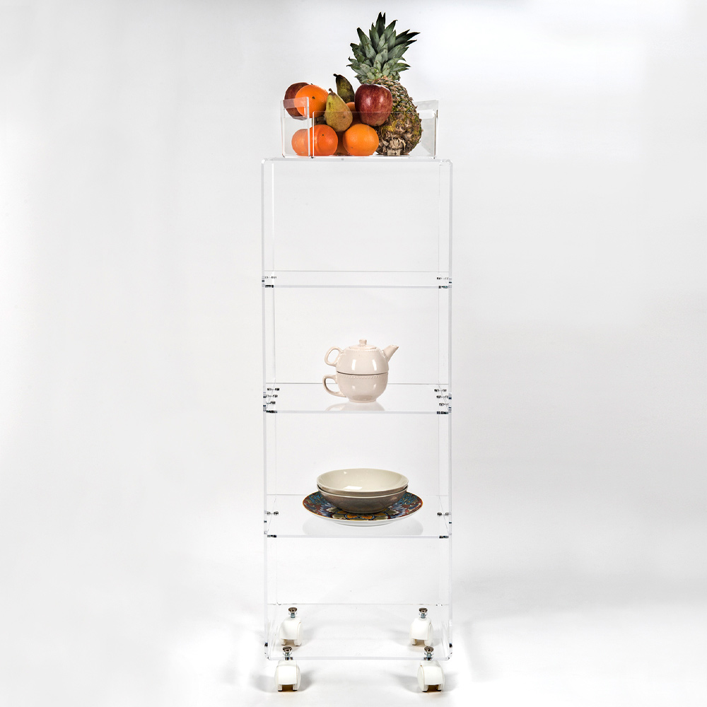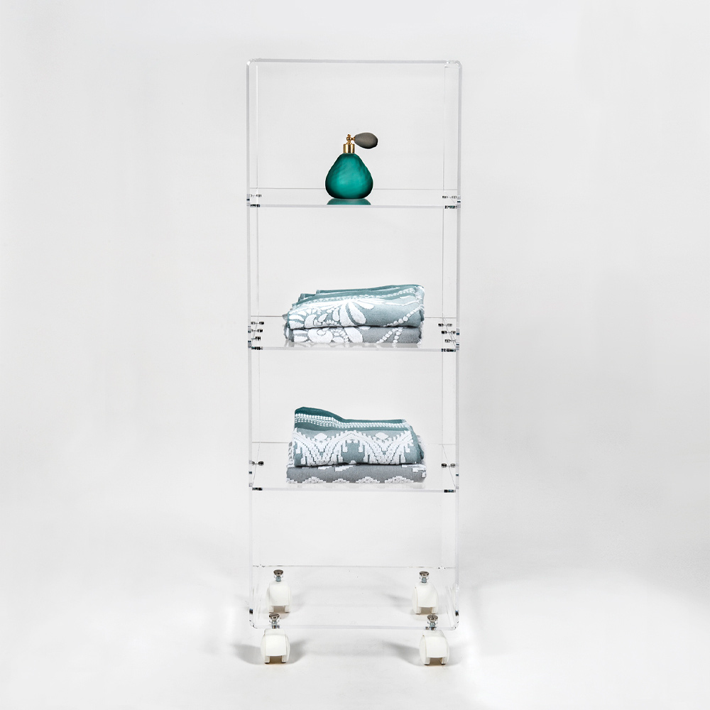 Elke plank van deze trolley is een podium dat de inhoud ervan benadrukt, dankzij de kristalheldere transparantie van het eerste keus plexiglas. De grondstof, 100% nieuw polymeerplexiglas , zorgt voor een helderheid en schittering die in de loop van de tijd onveranderd blijft, een toewijding aan kwaliteit die gezien en gevoeld kan worden.
