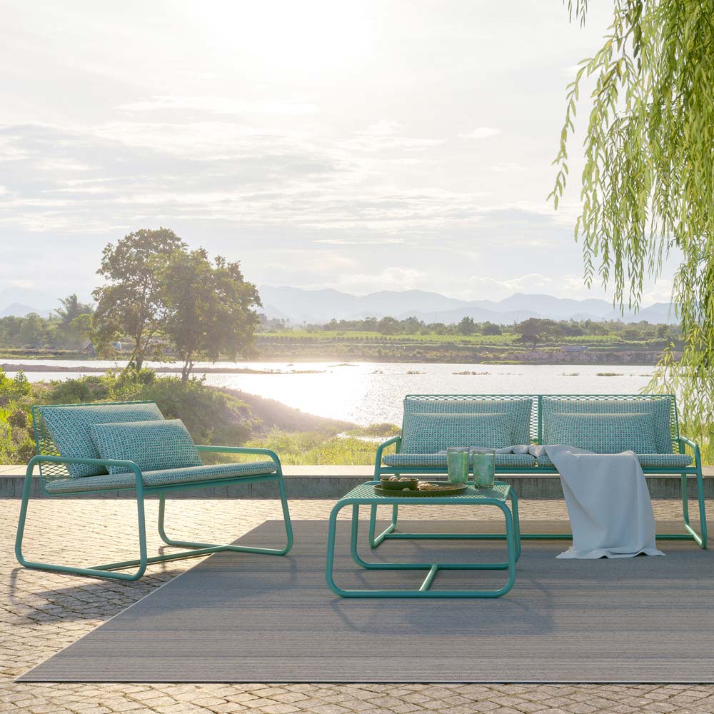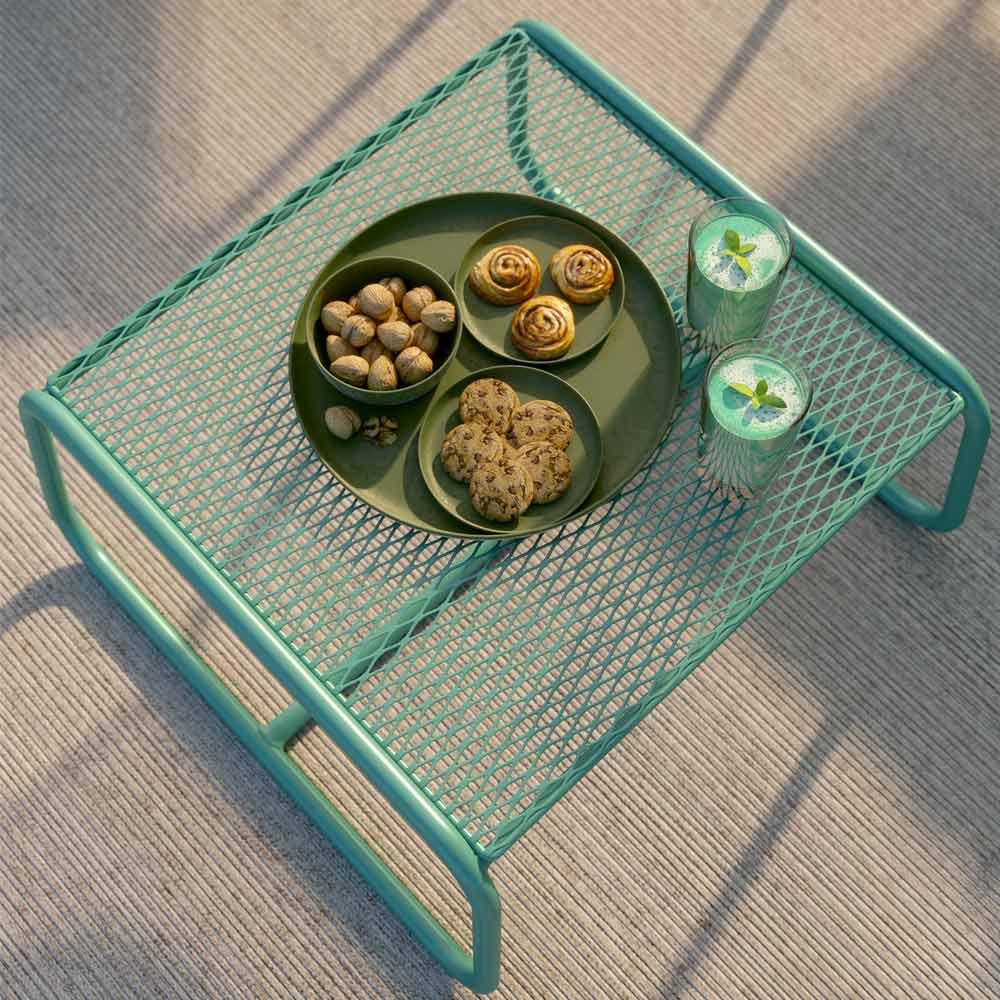 Metalen tuinpoef verkrijgbaar in verschillende afwerkingen, luxe artikel gemaakt in Italië.