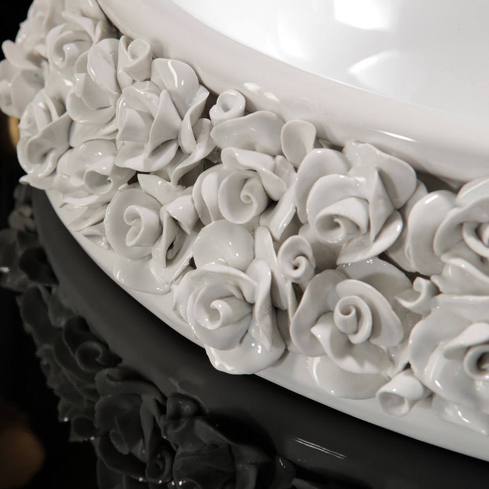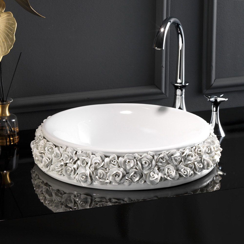 Handgegoten porseleinen wastafel met bloemblaadjes Made in Italy