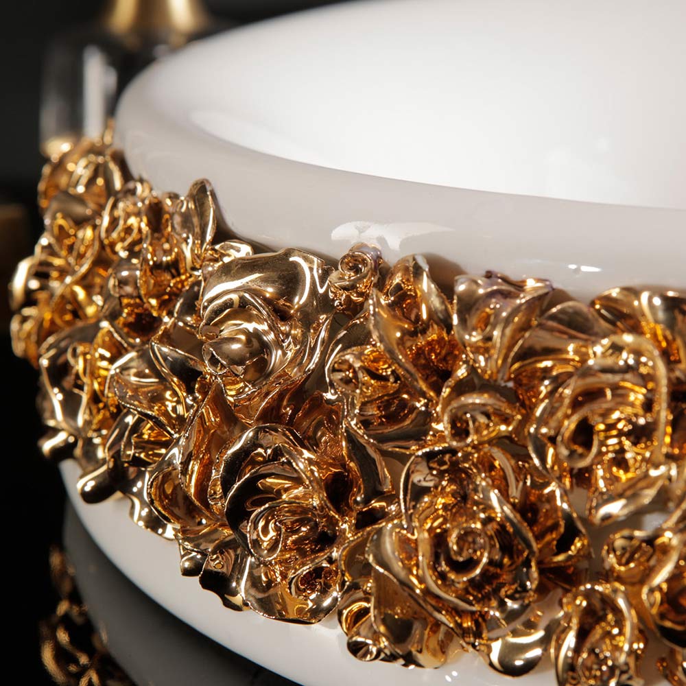 - glanzend witte wastafel vol gouden bloemblaadjes