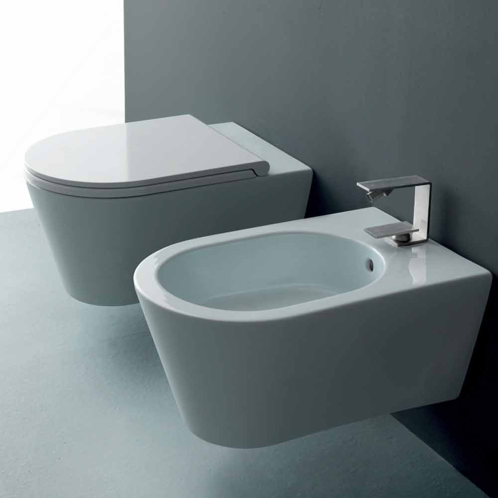 Sun Round modern keramiek hangend toilet 57x37 cm, made in Italy