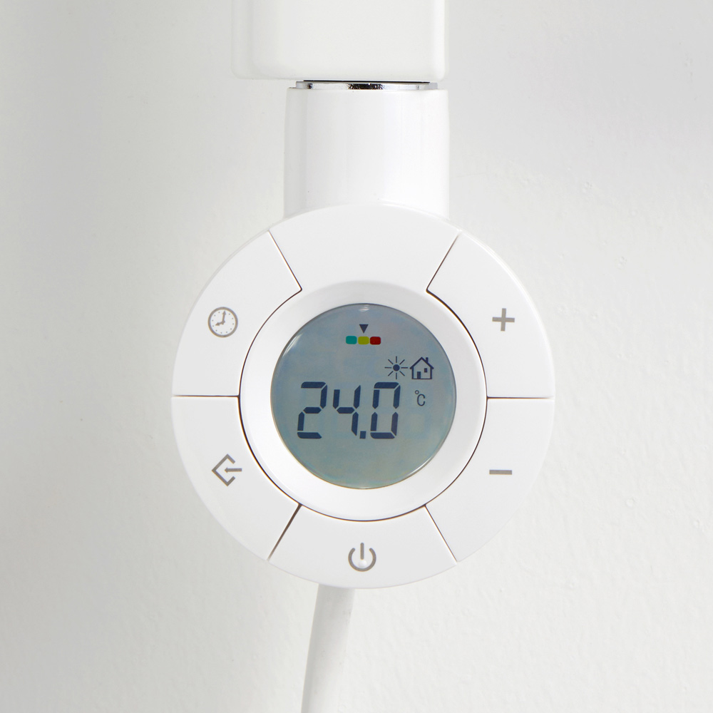- Compleet met temperatuurregeling, datum en tijd, modusselectie (Eco, Open raam, Comfort, Antivries, Nacht. 2-uurs timer) AAN-indicator.